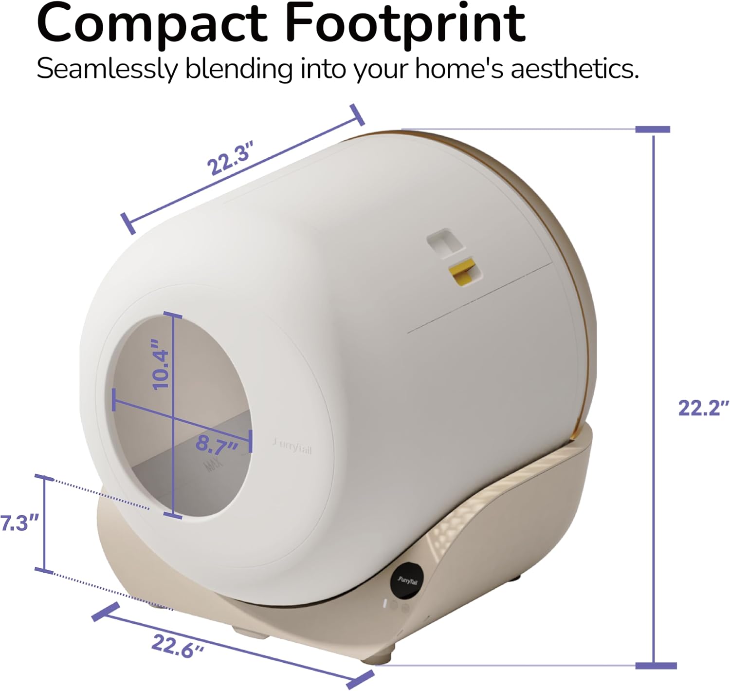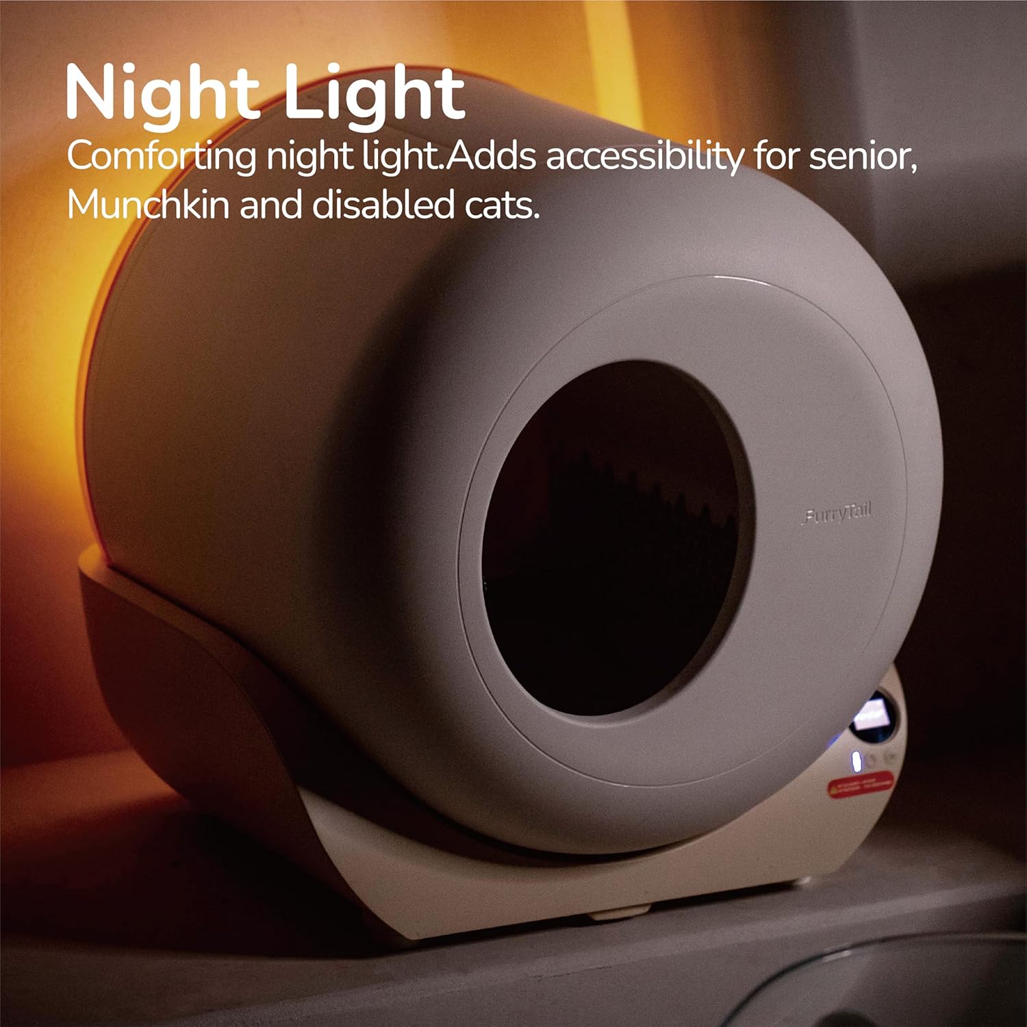 FurryTail Self Cleaning Litter Box with APP - Automatic Cat Litter Box for All Your Cats, Odor Control, Spacious Interior and Large Wastes Bin Capacity,Includes 40 Litter Bags