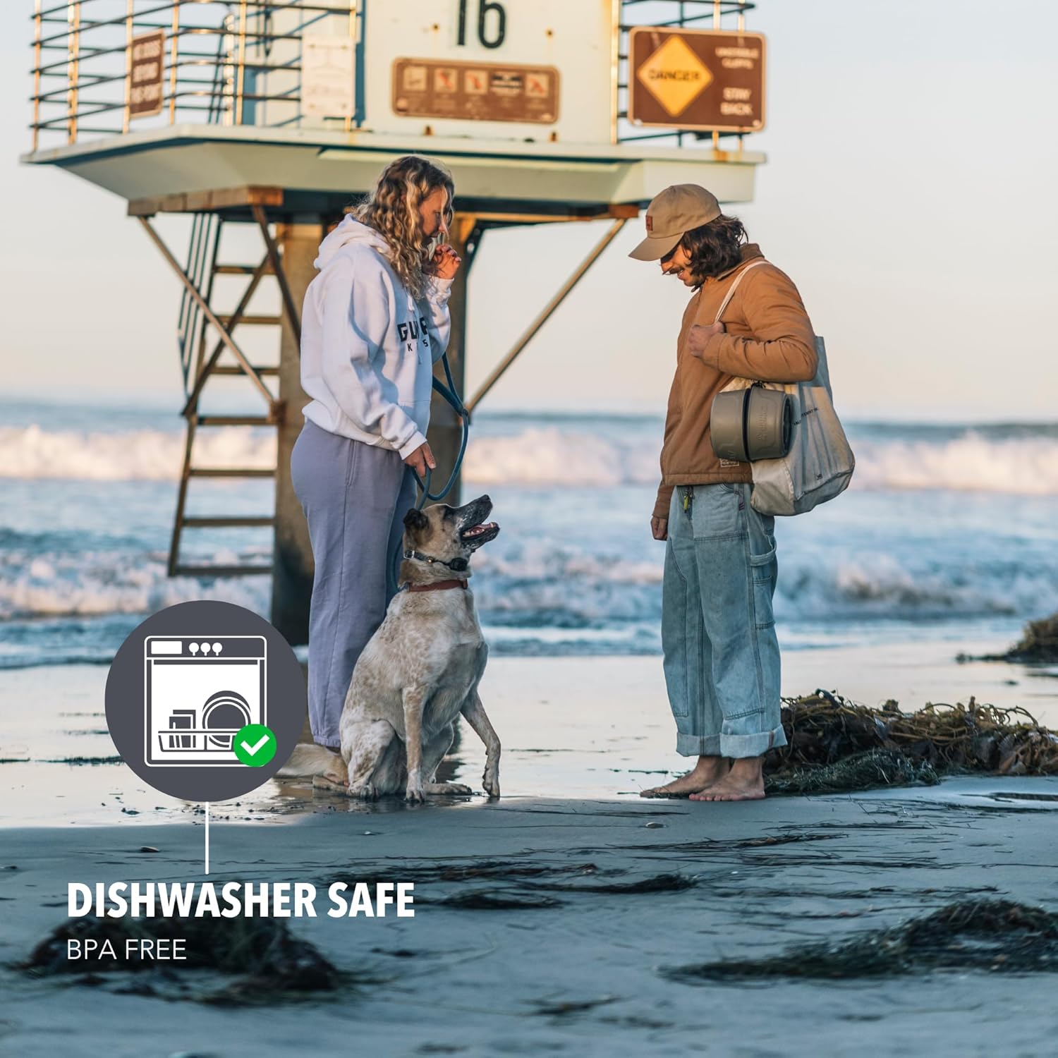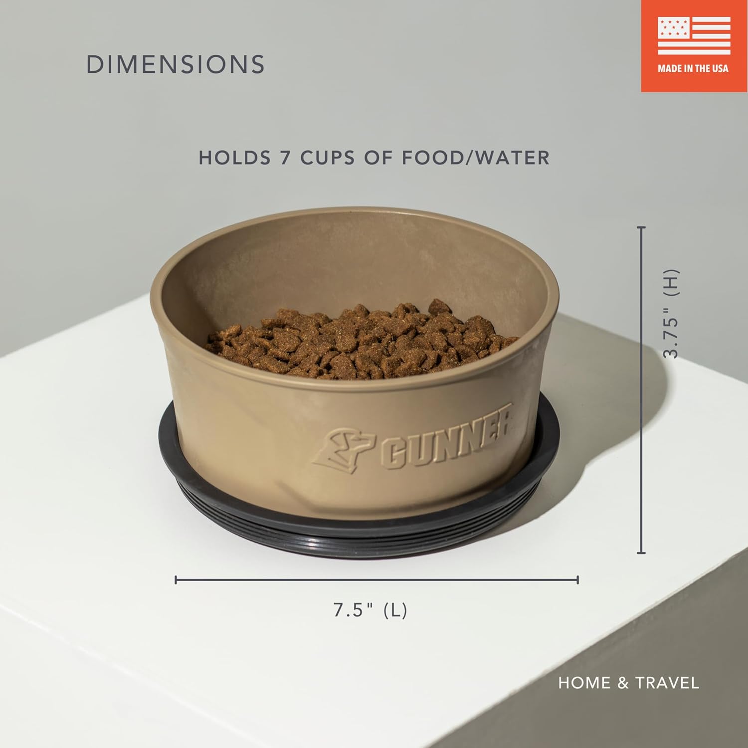 GUNNER Dog Bowl with Spill-Proof Travel Lid- K9 Companion Food & Water Bowl, Lightweight Rust-Proof & Shock Resistant Stackable, Leak Resistant Nesting Lid, (Tan)