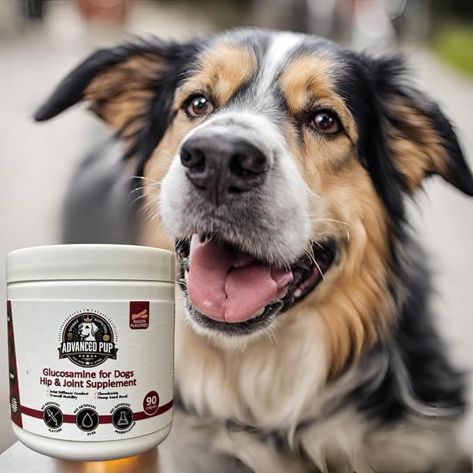 AdvancedPUP Hip and Joint Supplement - Effective Chondroitin MSM & Turmeric for Dogs - Dog Hip & Joint Care to Heal Dog Joint Stiffness & inflammation - Natural Glucosamine Supplement Tasty Bacon 90CT