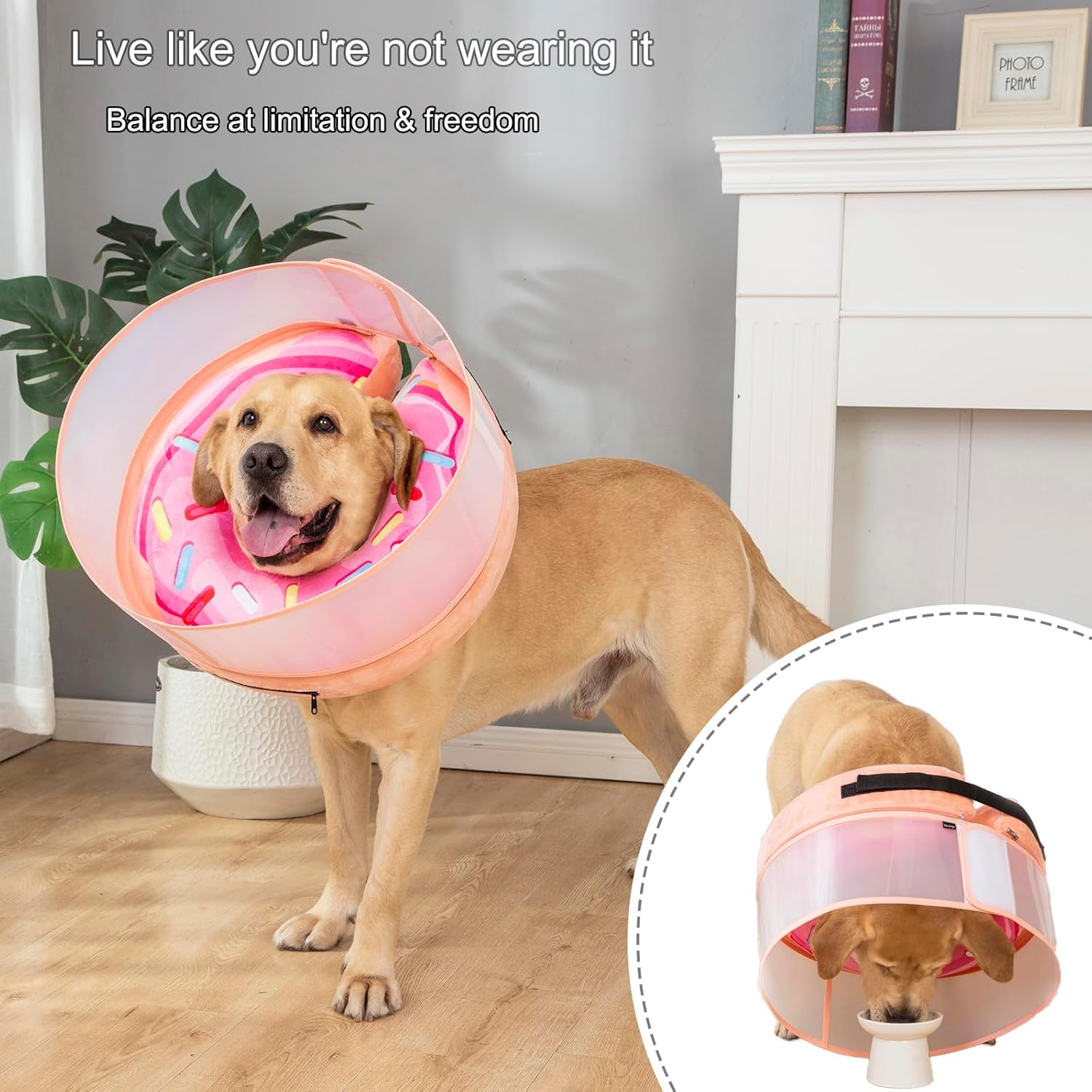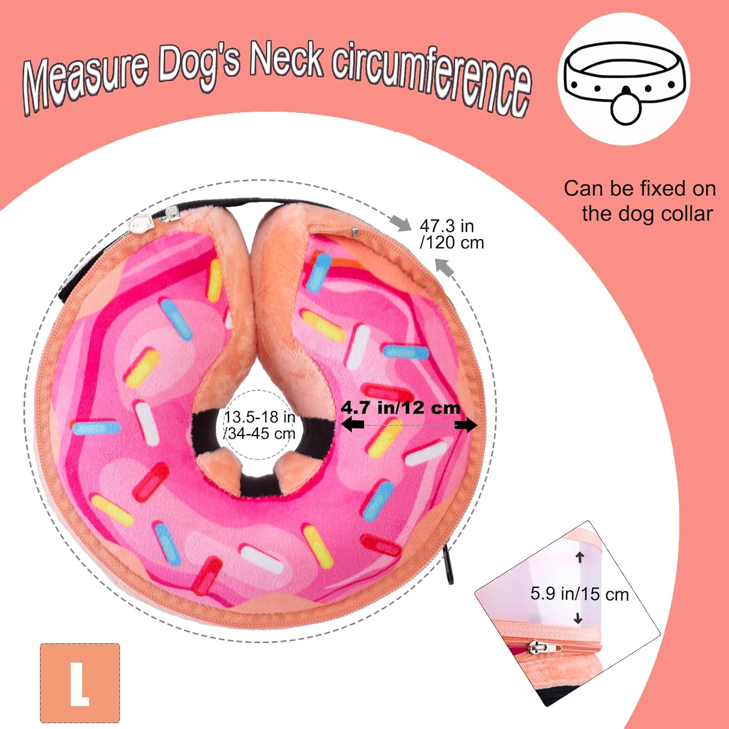 Inflatable Dog Cone Collar with Enhanced Anti-Licking, Soft Neck Donut for Dogs Cats, Recovery Pet Cone Collar After Surgery for Large Medium Small Dogs (Donut Pink2, Large)