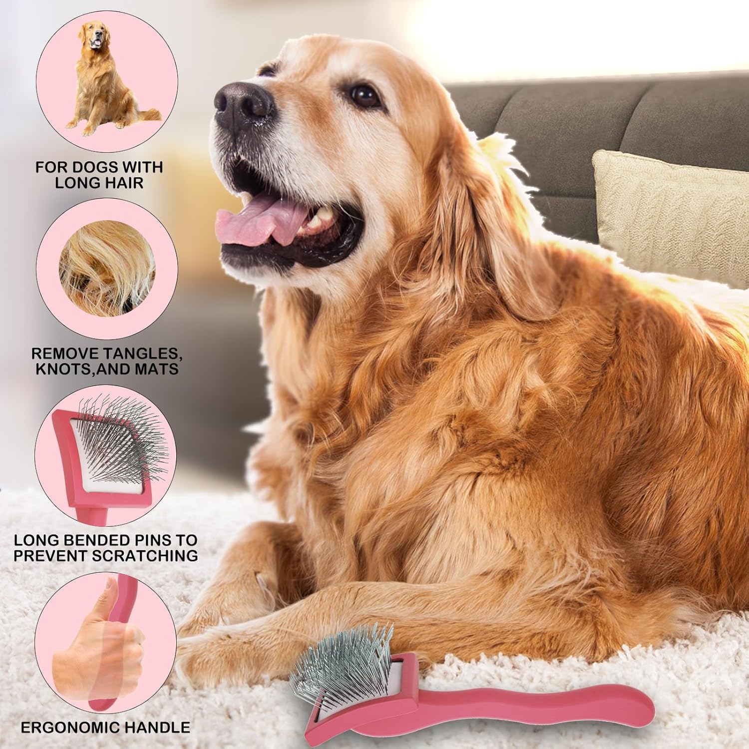 Dog Slicker Brush for Golden Doodle Grooming Kit - Dematting Brushes for Goldendoodles, Labradoodles, Poodles - Pet Hair Brush for Short & Medium Haired Dogs - Small (Red)