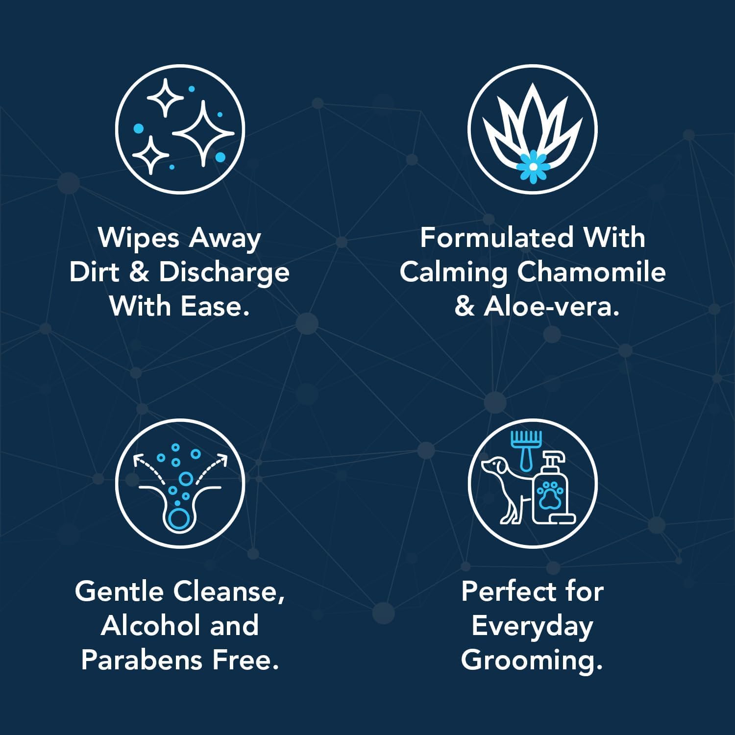- REVITALIZES AND CLEANS - Infused with the calming power of chamomile and aloe vera, along with the goodness of Vitamins C and E, our wipes offer a refreshing cleanse for your dog's paws, body, and butt area, leaving them feeling refreshed and revitalized.