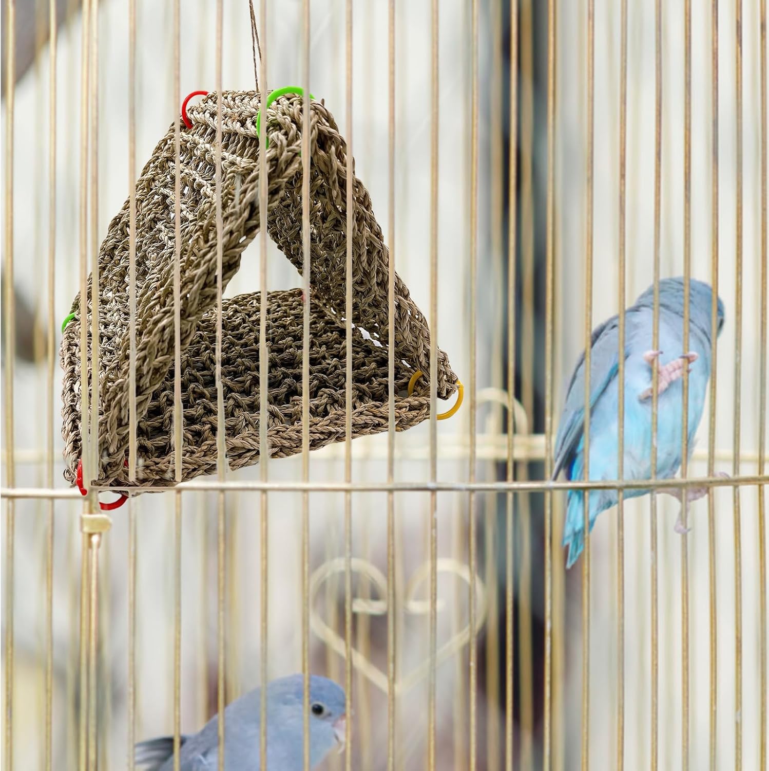 - 【Hut/Hammock】With attached ring buckles,you can choose to make 3 seagrass mats into a bird hut or a long bird hammock! Give your birds an extra place to rest or play by using rope to hang it in the bird cage.