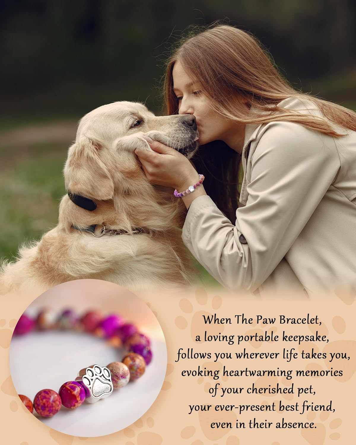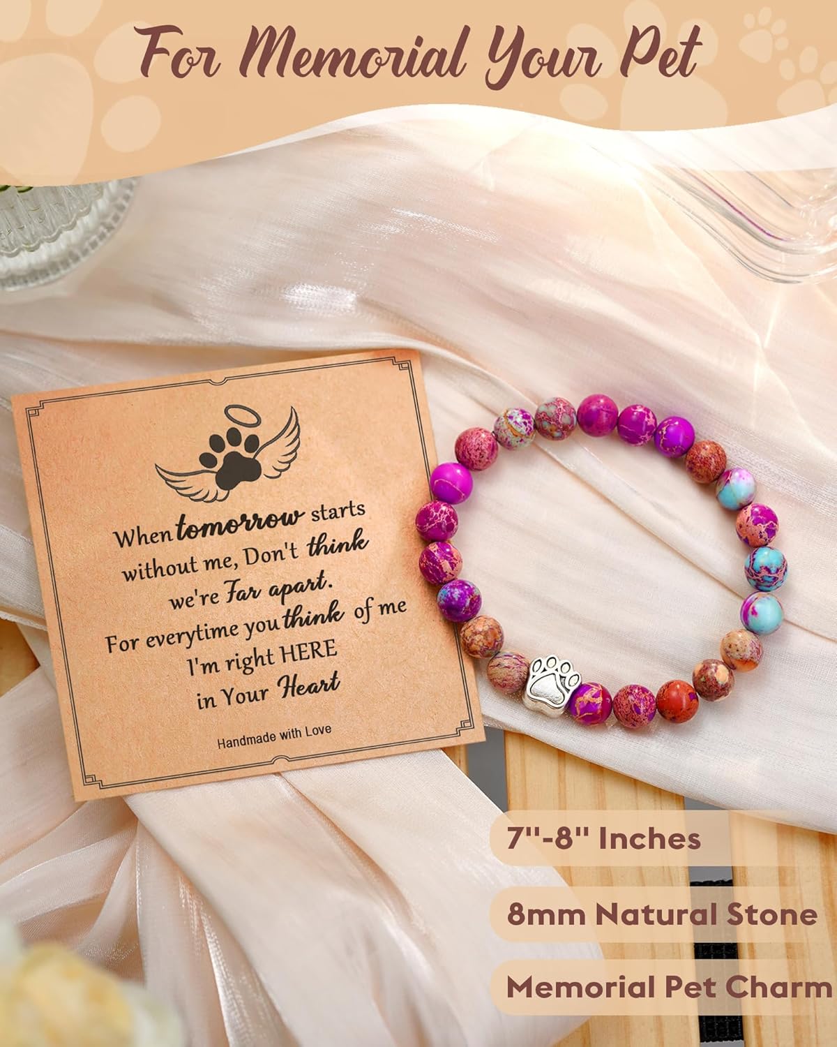 - ใ Material & Sizeใ - Our memorial bracelets feature charming stainless steel pet paw and are crafted with high-quality 8mm natural stone. Length is about 6.8" to 8", fits most people's wrists, and is comfortable and convenient