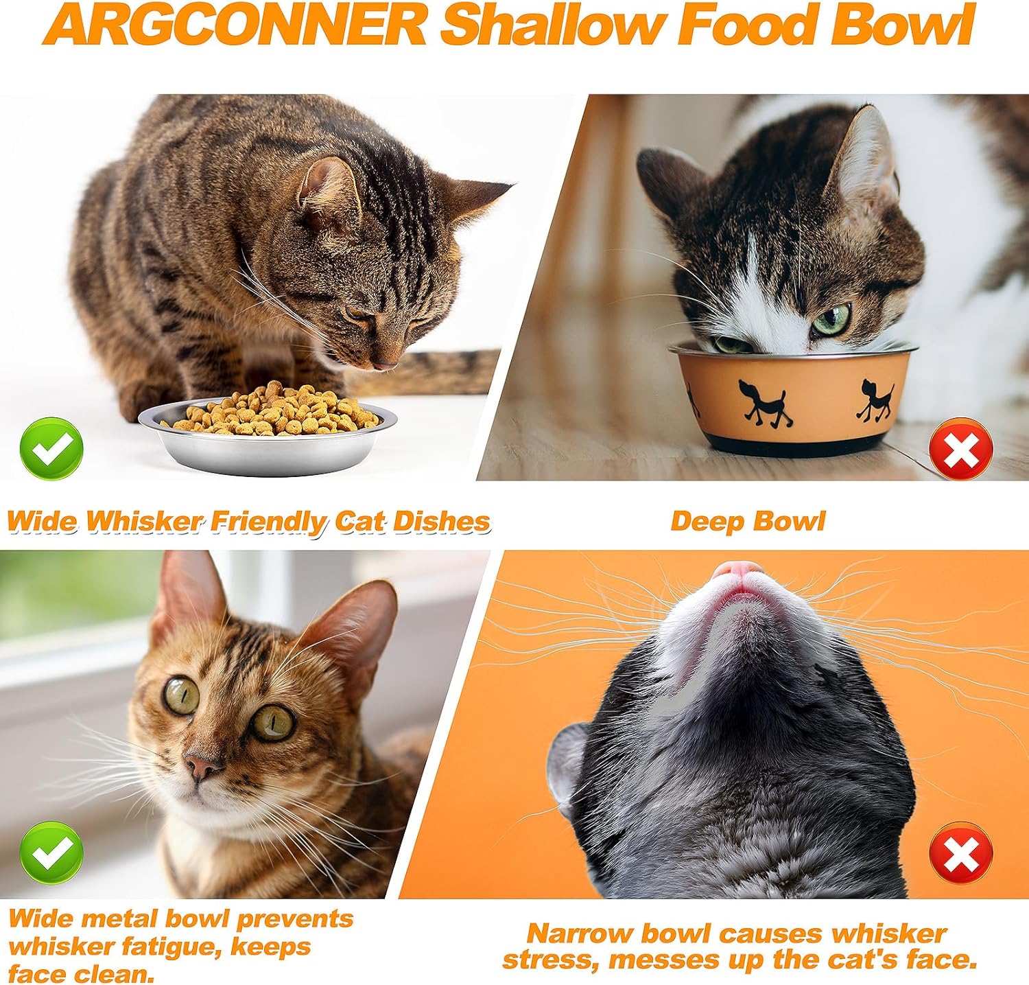 - Whisker-Friendly Design: Engineered with shallow, wide metal cat bowl to prevent whisker fatigue, ensuring your cat eats comfortably. The shallow design encourages easy access to food, reducing mealtime stress and discomfort often associated with deeper bowls