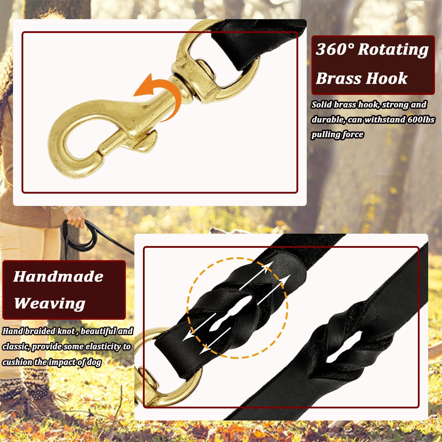 - 【100% Genuine leather dog leash】-3/4'‘×8ft,dog training leash is made of real imported Italian leather. This hand-woven dog leash is more elastic and more fashionable. Handmade, strong tensile strength and long-lasting.