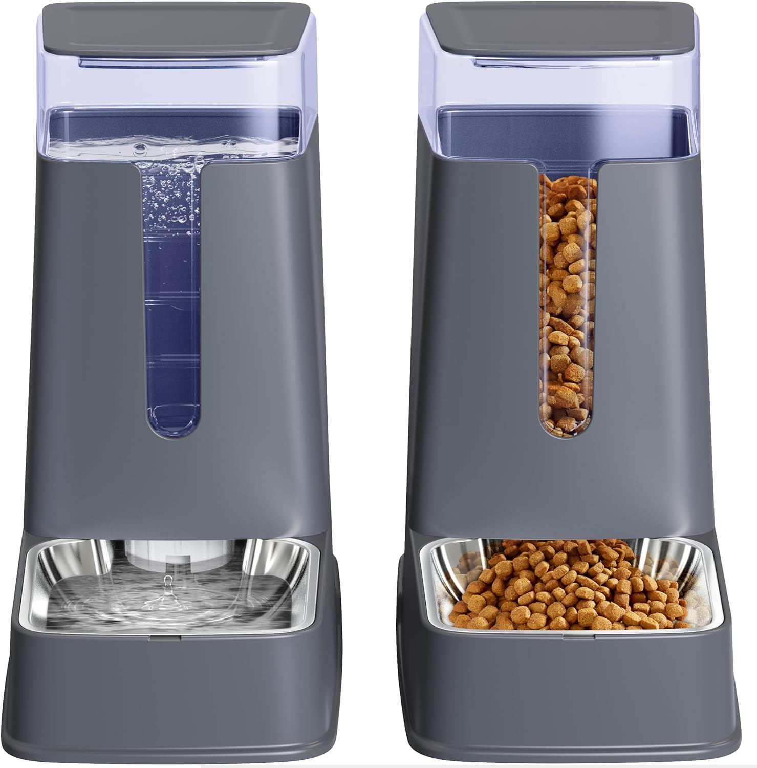 Cat Food Dispenser and Cat Water Dispenser Set with Stainless Steel Bowls Gravity Dog Feeder for Small Medium Big Cat Dog Pet Puppy Kitten, 1 Gallon x 2