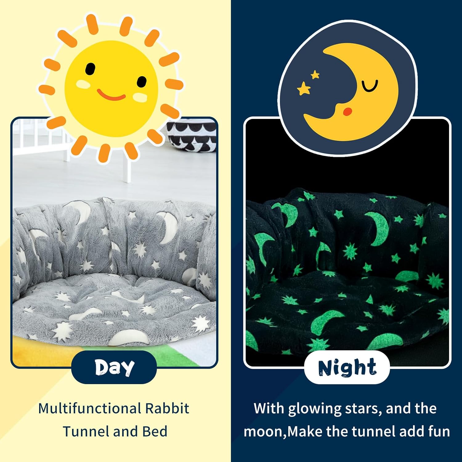 - Detachable Design: The rabbit bed tunnel is the ideal pet bed and rabbit tunnels for indoor rabbits interactive. The cushion and tunnel can be removed for easy washing.