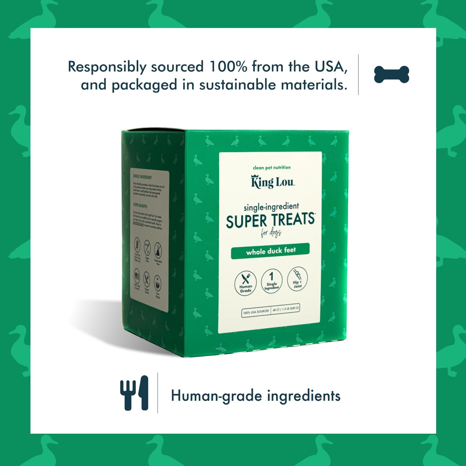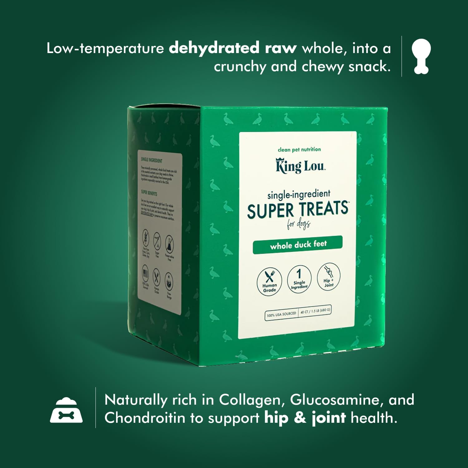 King Lou Pets - Whole Duck Feet for Dogs - Single Ingredient Treat - Dehydrated Dog Treats - USA-Made Dog and Cat Treats - Collagen, Glucosamine, Chondroitin for Hip and Joint Health - 40 Count