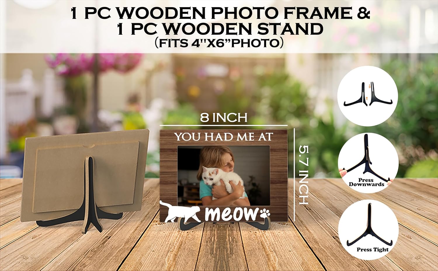 Pet Photo Frame - You Had Me At Meow Wooden Tabletop Picture Frame With Stand - Best Cat Ever Photo Frame - I Love My Cat Gifts - Cat Frame Gifts For Cat Lover -57