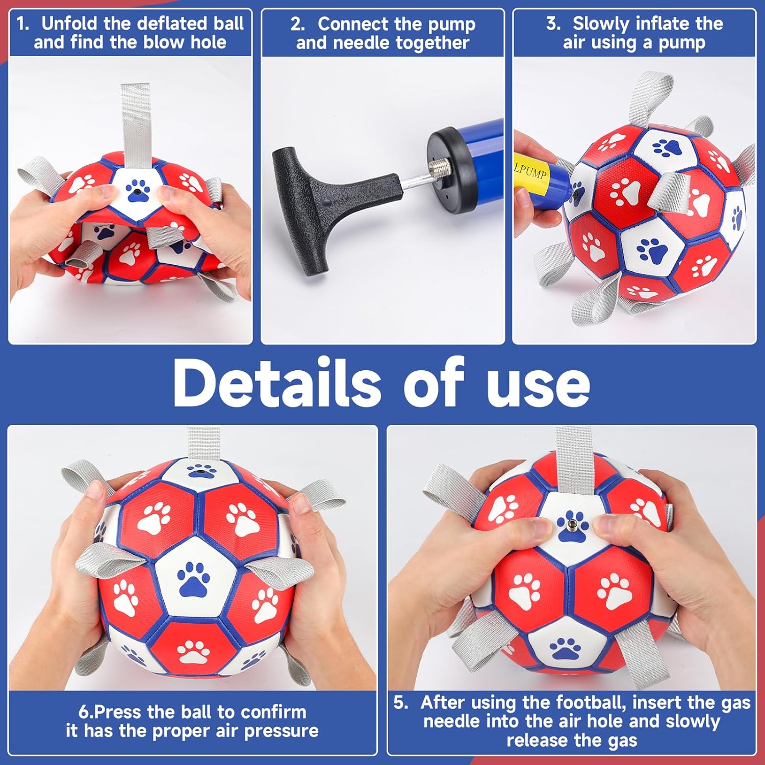 - Interactivity and Fun: These small dog toys soccer ball with straps are very suitable for dogs to play tug of war games, increasing interaction between owners and dogs, while exercising their bite and reaction abilities. They can not only be used as tug of war toys, but also for throwing and chasing games, meeting the various gaming needs of dogs.