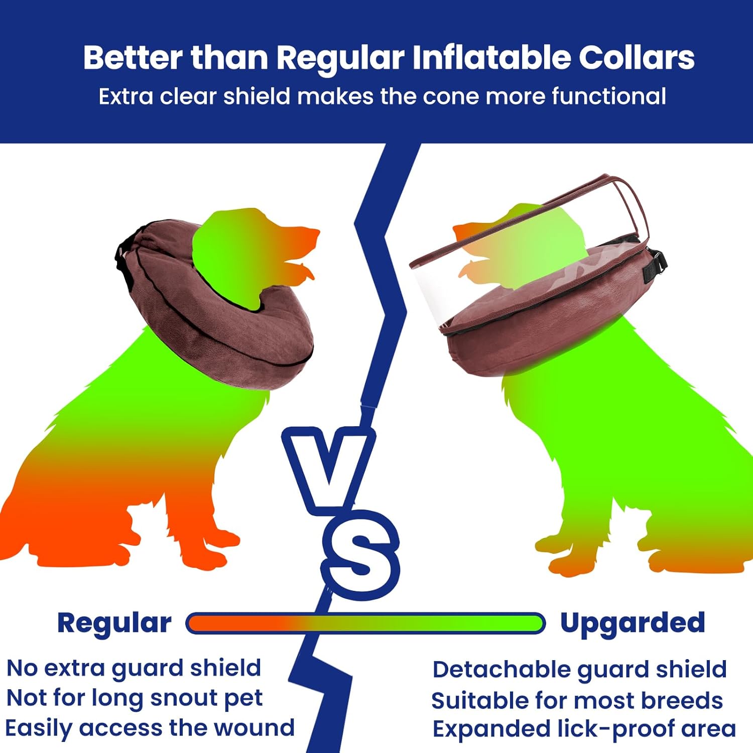 - Helps the Healing Process: While wearing a dog cone collar may affect your dog's comfort, the dog inflatable neck collar offers a more pleasant experience compared to traditional plastic cones. Its rounded design creates a barrier that prevents your pet from aggravating his/her wounds. Similar to an inflatable neck pillow, it doesn't block your dog's vision and minimizes discomfort. Plus, if your dog bumps into something, there’s no frightening noise, making the healing process less stressful