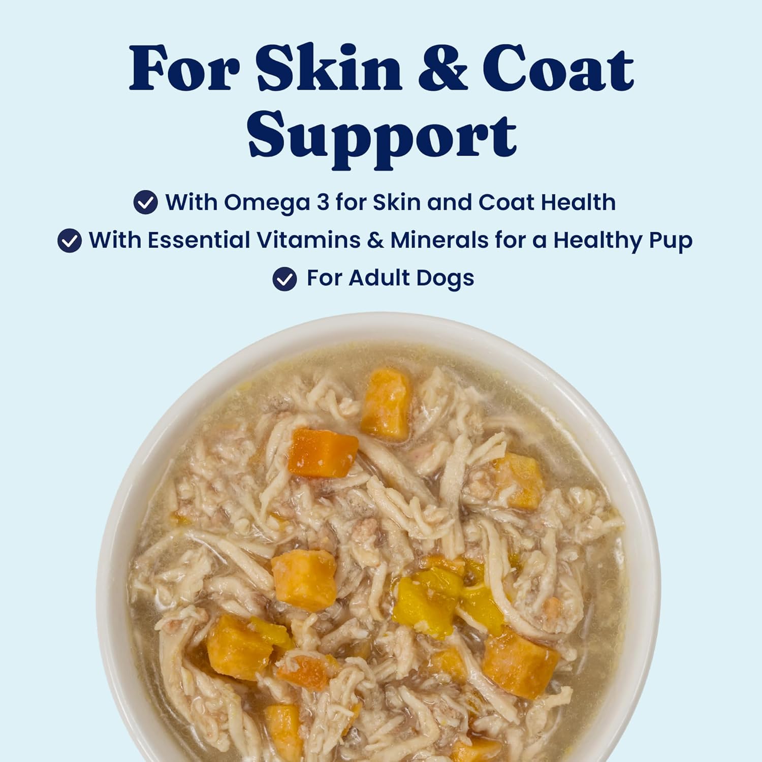 - Omega-Rich Wet Food Cups – Each cup has omega 3 fatty acids with EPA & DHA to support skin & coat health, immune function & nutrient absorption. Great for grain free wet dog food sensitive stomach needs, soft senior dog food, or puppy wet dog food