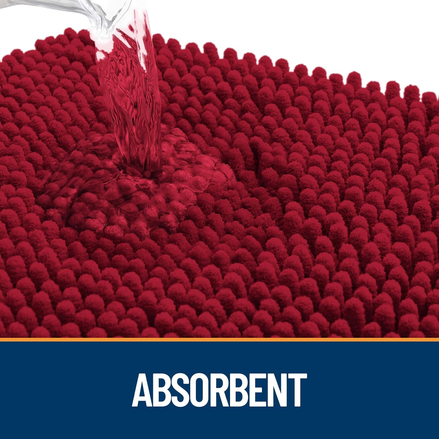 OLANLY Dog Door Mat for Muddy Paws 24x16, Absorbs Moisture and Dirt, Absorbent Non-Slip Washable Doormat, Quick Dry Chenille Mud Mat for Dogs, Entry Indoor Entryway Carpet for Inside Floor, Red