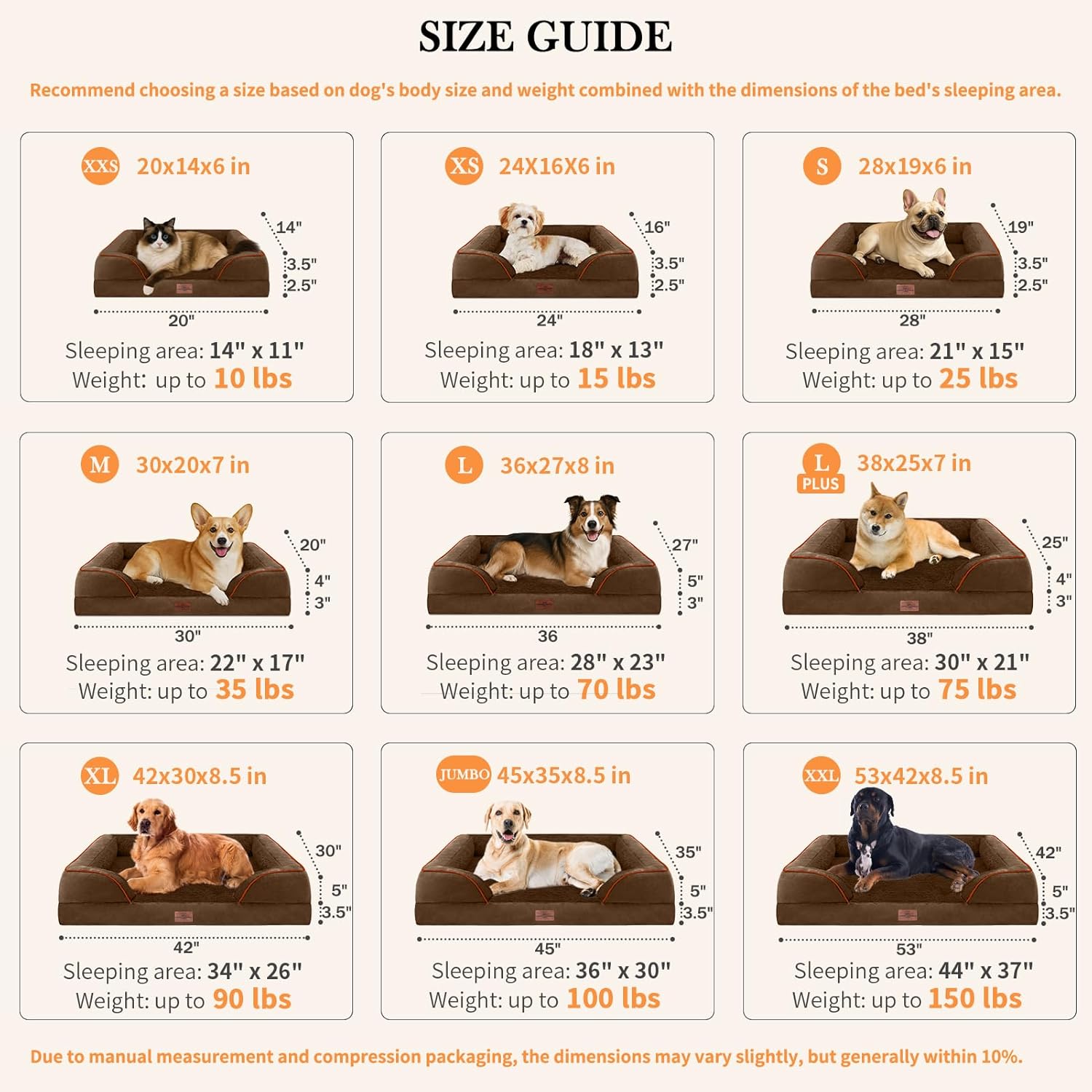 Comfort Expression Orthopedic Dog Bed for Large Dogs 36x27 Inch, Waterproof Supportive Egg Crate Foam Large Pet Bed with Removable Bolsters, Dog Couch with Washable Cover & Non-Slip Bottom, Dark Brown