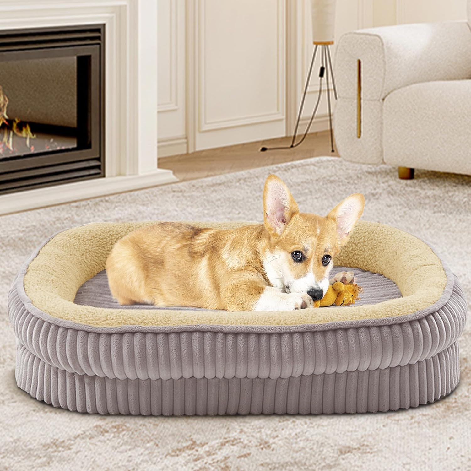 Orthopedic Dog Bed for Medium Dogs Breeds, High Density Egg Crate Foam Dog Sofa Beds,Oval Kennel Bed, Pet Couch Bed with Four Sided Bolster, Removable Washable Cover& Non-Slip Bottom