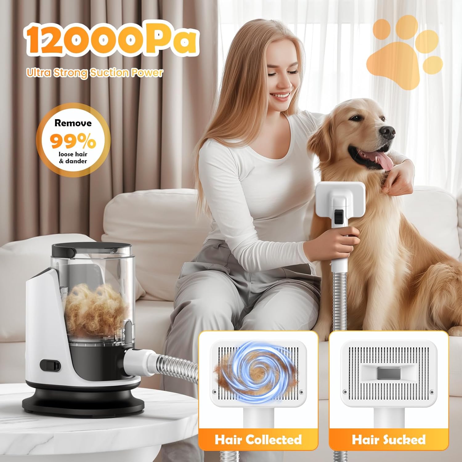 - Strong Dog Grooming Vacuum: Features a powerful 12000PA suction motor to effortlessly suck away hair, dirt, dander, and fleas from your dog.