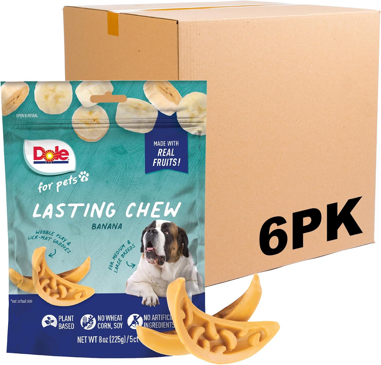 Dole for Pets Freshly Fetched Lasting Chew, Banana Flavor Dog Treats | Flavored with Real Fruit, No Wheat, Corn, Soy, Artificial Flavors, Colors, Preservatives, or Animal Products, 8 Ounce - 6 Pack