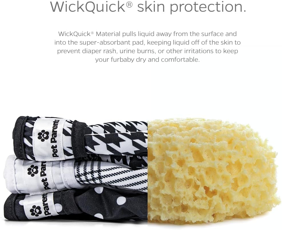 - 3 WASHABLE DOG DIAPERS PER PACKAGE - So you can have one in the wash, one on your pup, and one on hand, just in case. Pet Parents washable doggie diapers save you money and are safer for the environment than single-use disposable dog diapers female & dog diapers male.