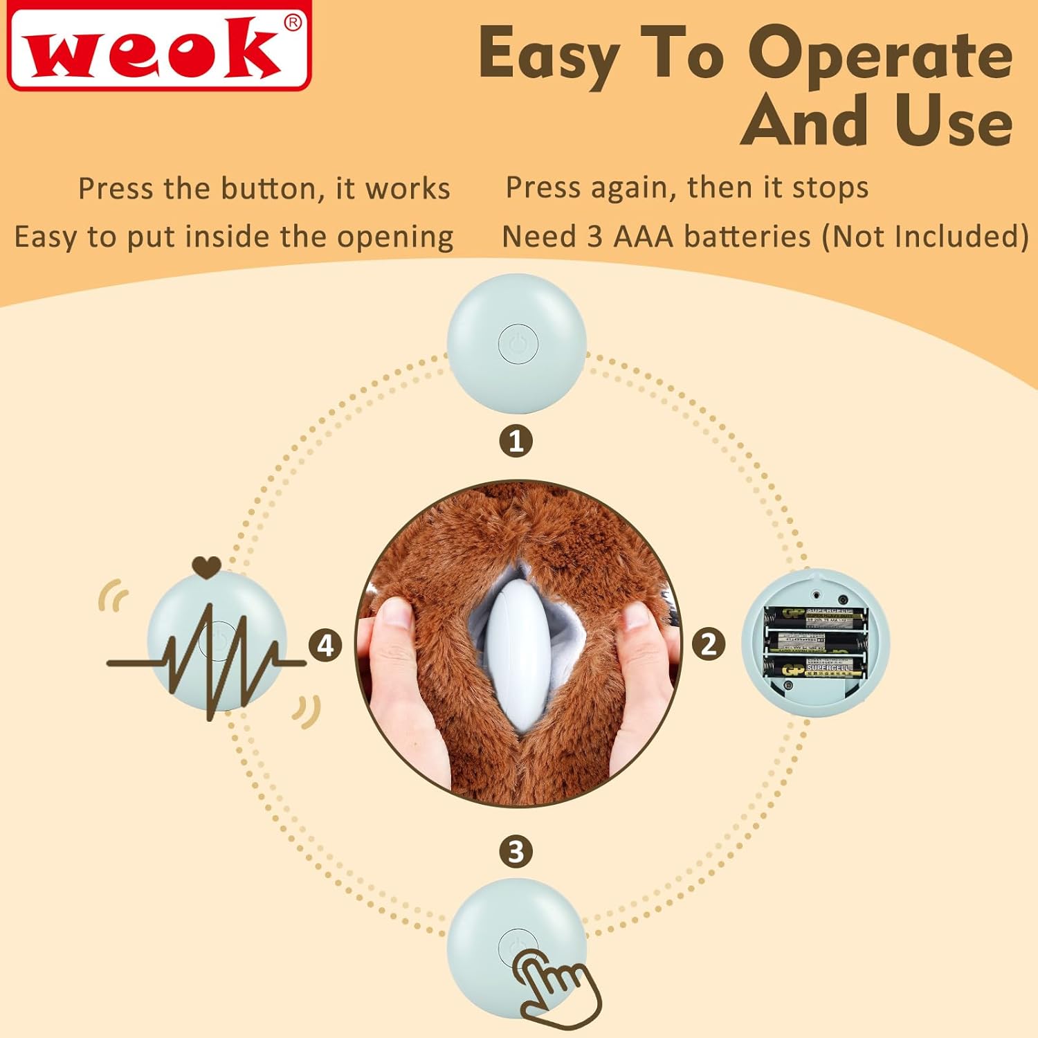 - 【Heartbeat Simulator Module + Plush Toy】The WEOK product contain a plush dog toy and a heartbeat simulator Module. The heartbeat Simulator need 3 AAA batteries(No battery included in the package). Press the button, then the heartbeat module works. Easy to operate.