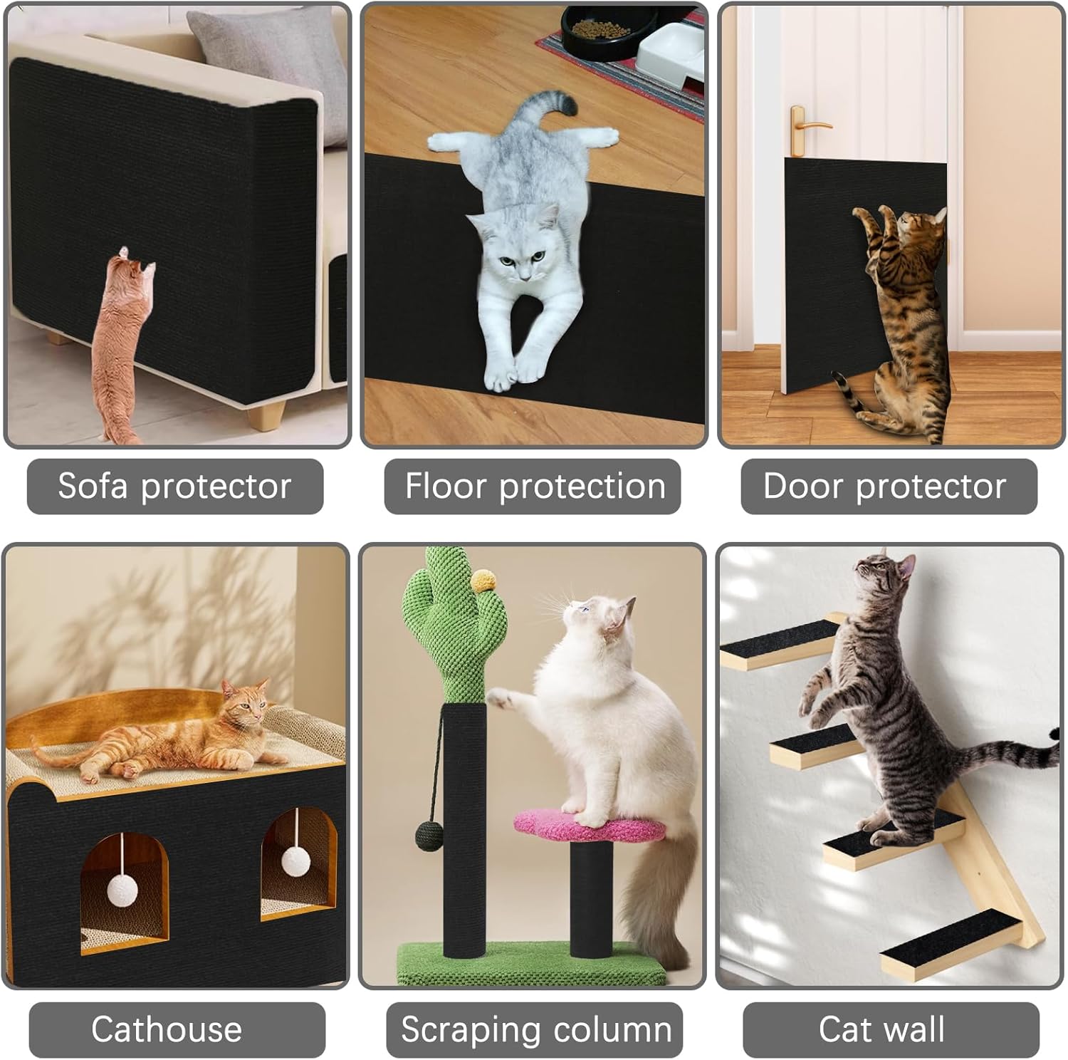 - 【DIY CUTTABLE DESIGN】Cat Scratch Mat Is Designed to Be Easily Cut to Replace Cat Scratching Board and Cat Scratching Post, And It Is Also Convenient to Stick It on Furniture and Other Items for Cats to Climb and Play. You Can Freely Cut It into Any Shape According to the Actual Size Required, And Use It for Cat Racks, Wooden or Wooden Cat Trees, Cat Towers, Sofas or Other Furniture and Other Surface Carpet Substitutes.