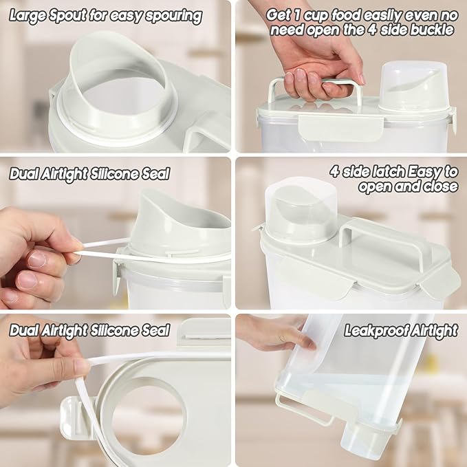 - Airtight Storage : The airtight cat food storage container is equipped with 4 spring locks and silicone gaskets that can be closed tightly, ensuring pet food stays super fresh and prevents liquid spillage.