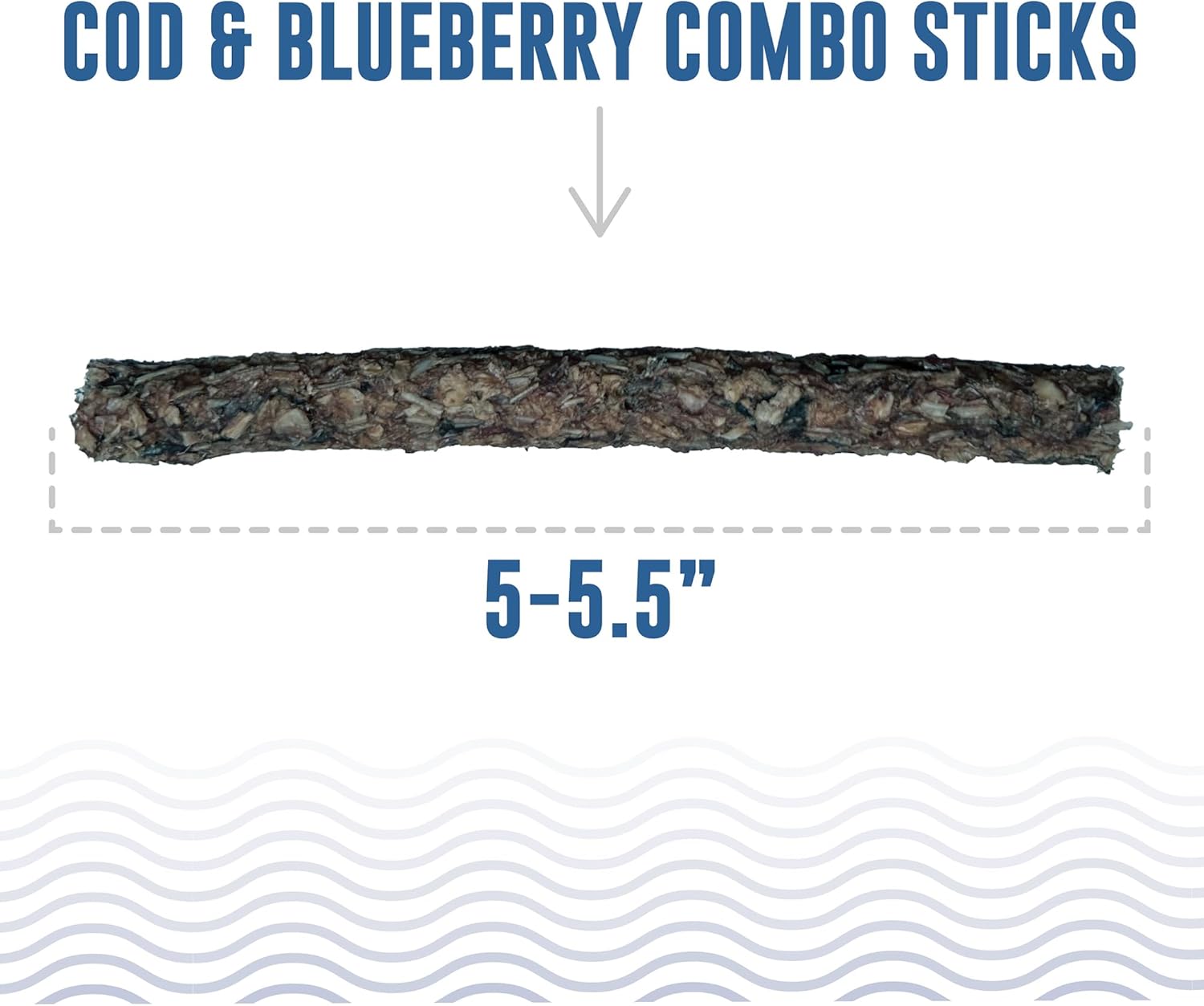 Icelandic+ Combo Sticks: Cod & Blueberry - 2oz - Dog Treats, Crunchy 2 Ingredient Pet Snacks, Preservative Free, Wild Caught Fish, Slow Baked, Natural