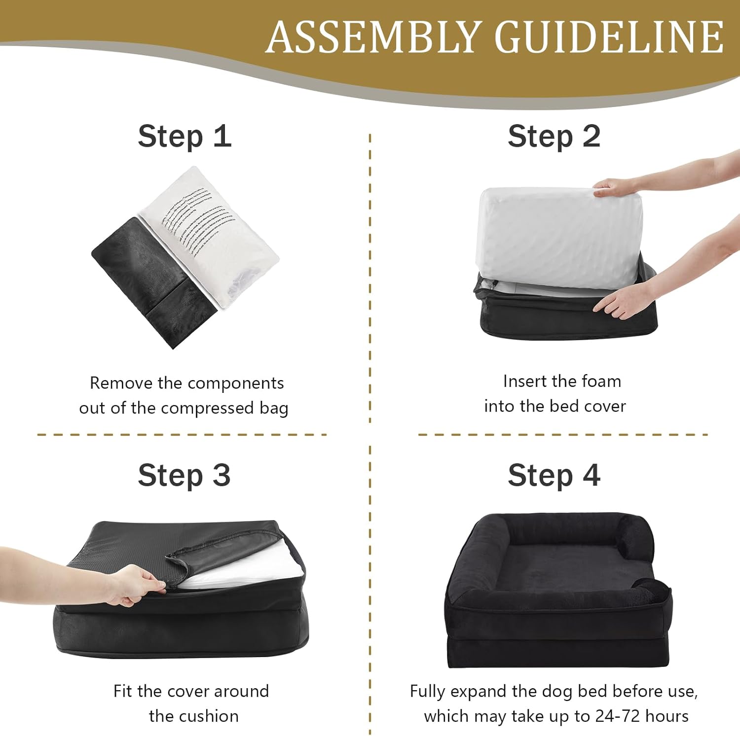 - Easy Care: Upgrade to our advanced waterproof dog bed. With full-coverage water-resistant fabric, even the bolster is protected from leaks. No noise, just pure comfort for your furry friend. The removable cover makes cleaning a breeze, simply unzip and toss it in the washing machine for a fresh and clean bed.