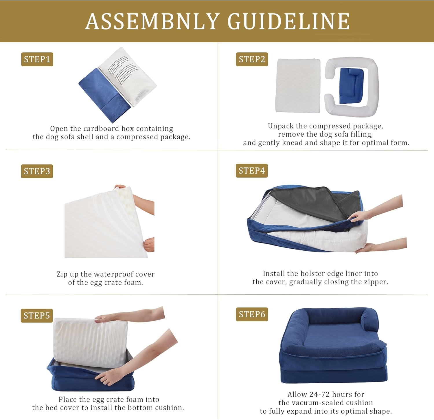 Bedfolks Orthopedic Dog Bed XXL, Waterproof Dog Sofa Bed for Giant Dogs, Egg Foam Pet Couch Bed with Removable Washable Cover and Nonslip Bottom, Navy Blue