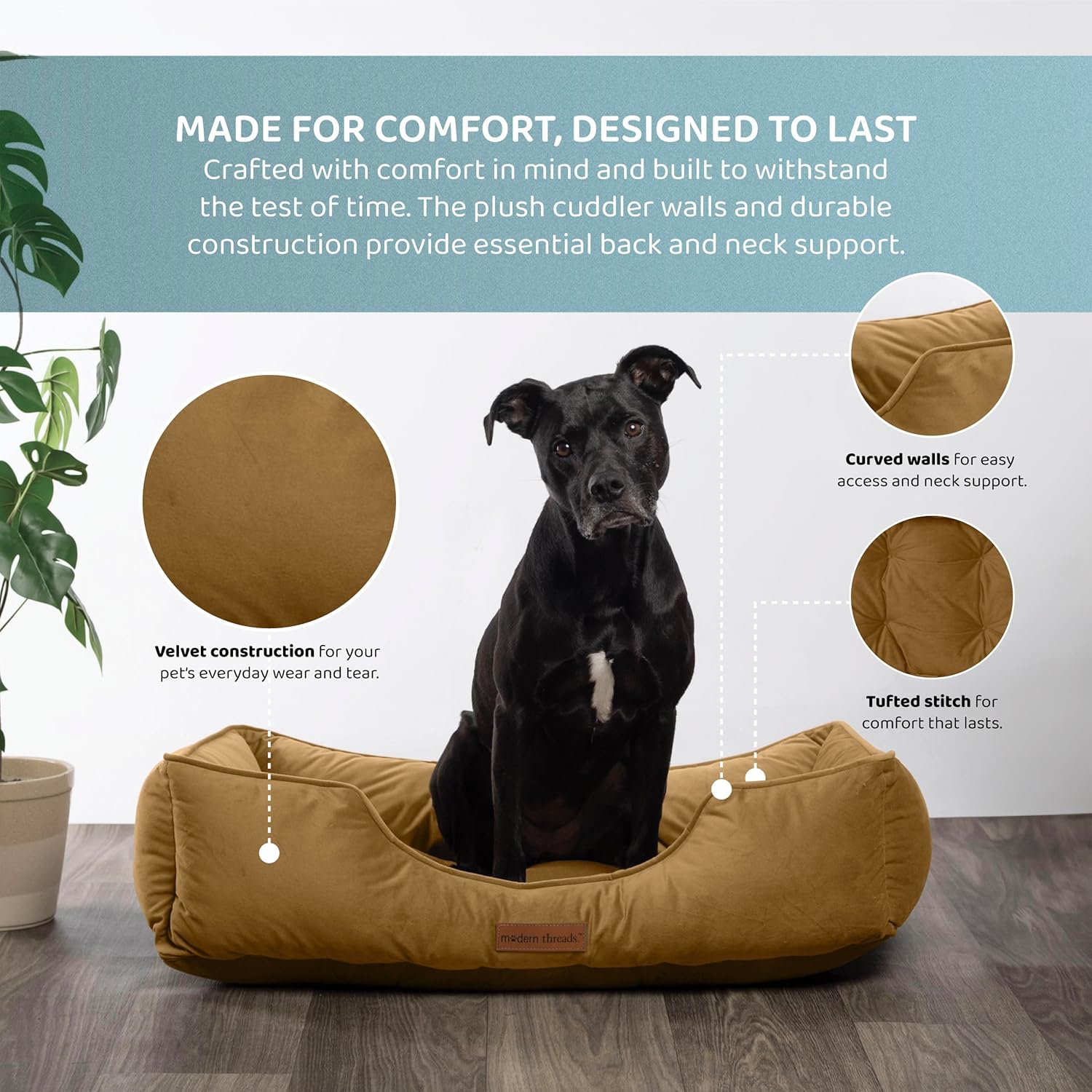 Modern Threads Luxury Dog Bed - Comfortable Tufted Velvet Cushion for Small to Large Dogs - Machine Washable - Durable & Cute Sleep Space for Pets - Pamper Your Pet with Cozy Beds - Caramel