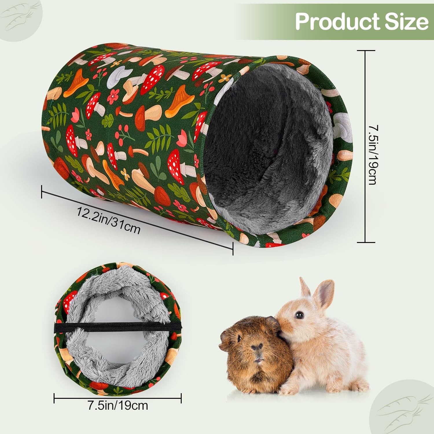 Glittme Guinea Pig Tunnel Washable Guinea Pigs Hideout Portable Rabbit Tunnels Soft Ferret Tunnel for Playing Resting Guinea Pig Accessories for Hedgehogs, Hamster, Mushrooms