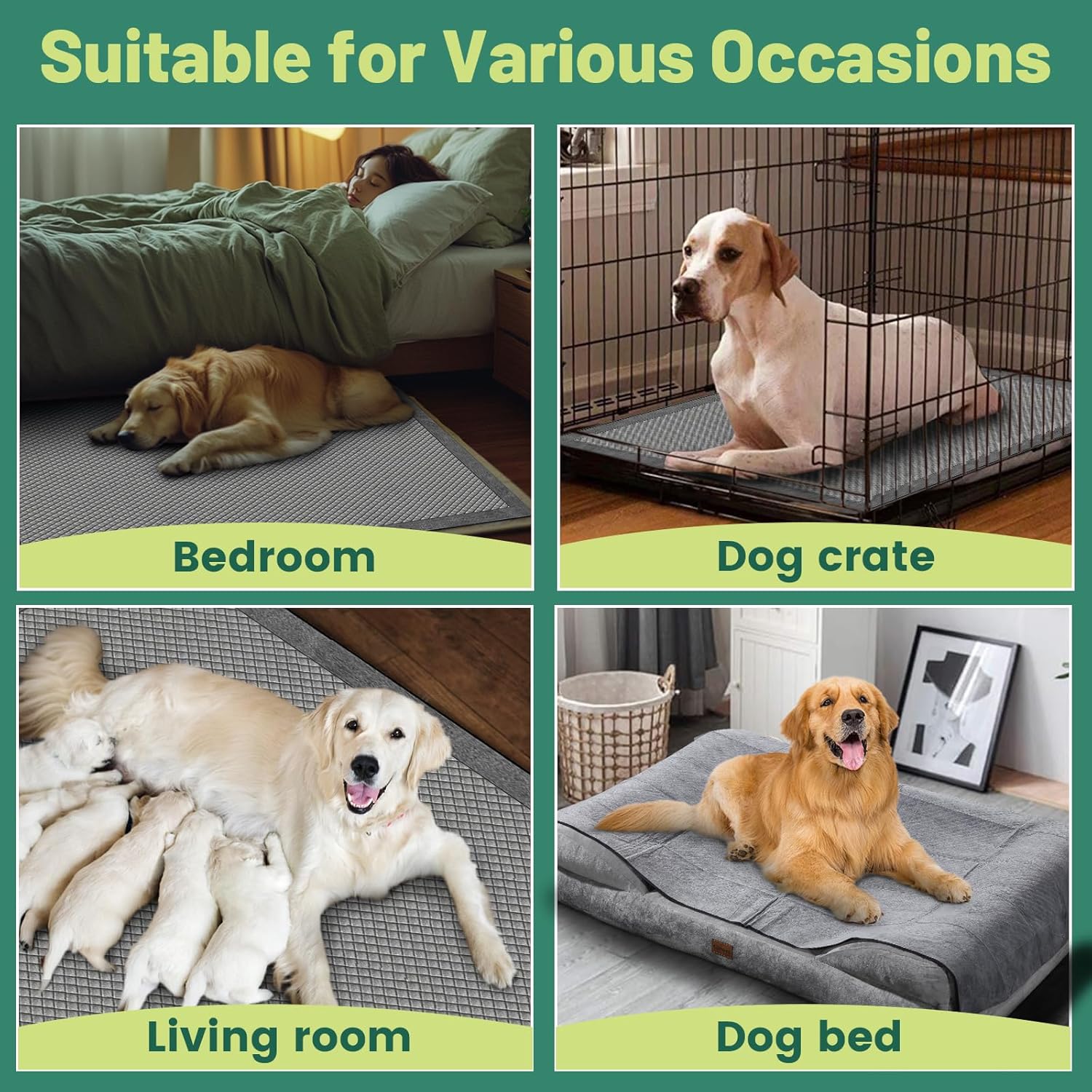 - 31x47 Inch Extra-Large Size, Wide Coverage: Suitable for dogs of all ages and breeds, this extra-large pee pad provides excellent protection for floors, carpets, beds, and furniture. Ideal for potty training, senior or sick pets, pet travel crates, trays, and various other scenarios, it can also be used to prevent spills from water and food bowls.