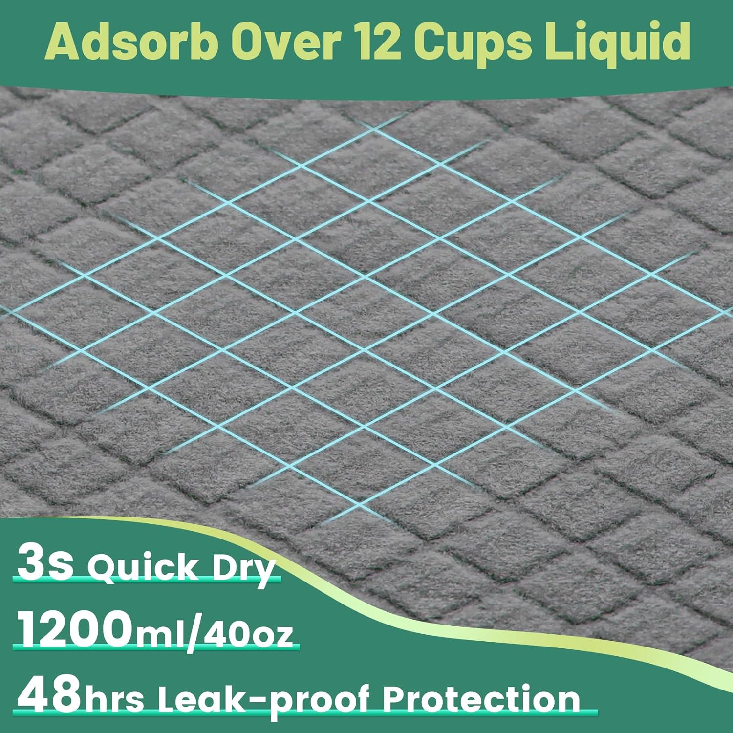 - Upgraded 6-Layer Design, Super Absorbent, Holds Up to 1200ml: Featuring super absorbent polymers, these pads quickly convert liquids into gel, locking in moisture within seconds and preventing overflow. They keep pets dry and comfortable all day long. The quick-drying surface ensures easy and hassle-free cleaning.
