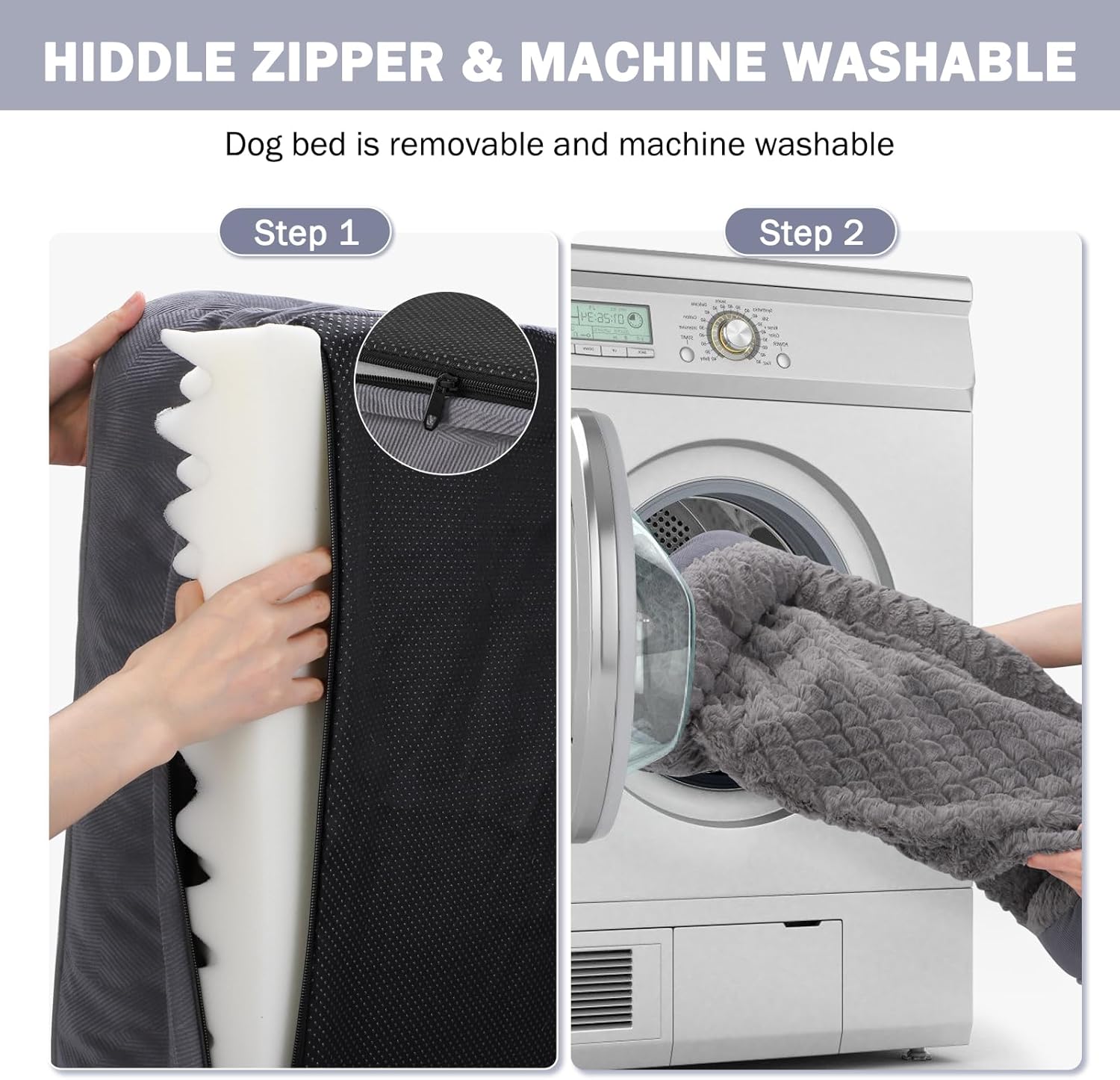 - 🐶WATERPROOF & WASHABLE DOG BED: The dog bed features a removable, machine-washable cover with a zipper for easy to quick remove and care, so just throw it in the washing machine and will be as good as new, ensuring your pet's space stays fresh and hygienic. The waterproof inner lining fully protect the foam from spills, water damage, or accidents, prolonging the product's life.