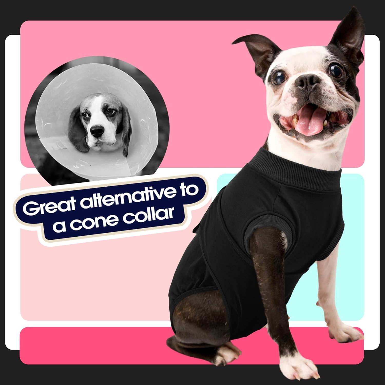 FUAMEY Dog Recovery Suit Male,Dogs Surgery Neuter Suits Puppy Spay Shirts for Female Protect Dog's Skin Anti Licking Abdominal Wounds Doggie Onesie Pet Bodysuit Alternative to Cone Black S