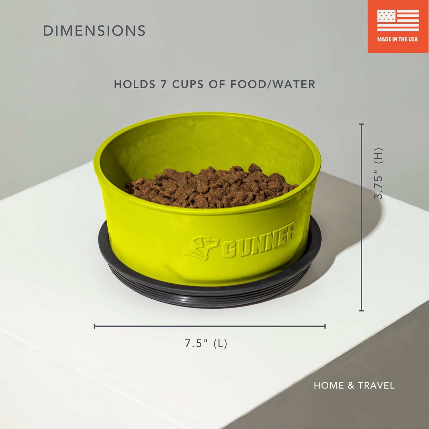 GUNNER Dog Bowl with Spill-Proof Travel Lid – 7.5" x 3.75", 1.3 lb, 7-Cup Capacity, BPA-Free, Rust-Proof, Shock-Resistant, Stackable, Dishwasher Safe, Leak-Resistant Nesting Lid – Yellow Green