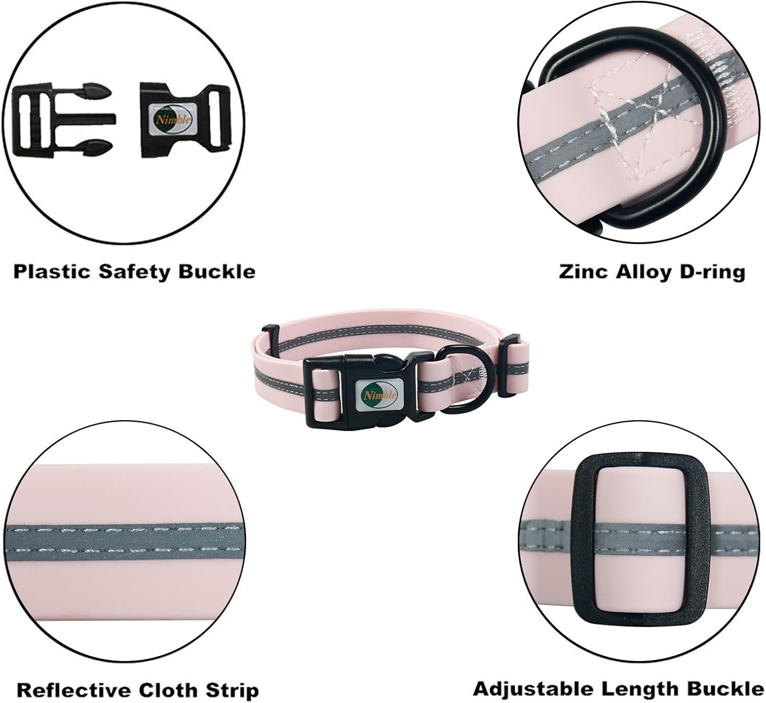 NIMBLE Dog Collar Waterproof Pet Collars Adjustable, Reflective, Durable Flex Poly Coated Nylon Basic Dog Collars 9 Colors in Size S/M/L (Light Pink, Large (15.35”-24.8”inches))