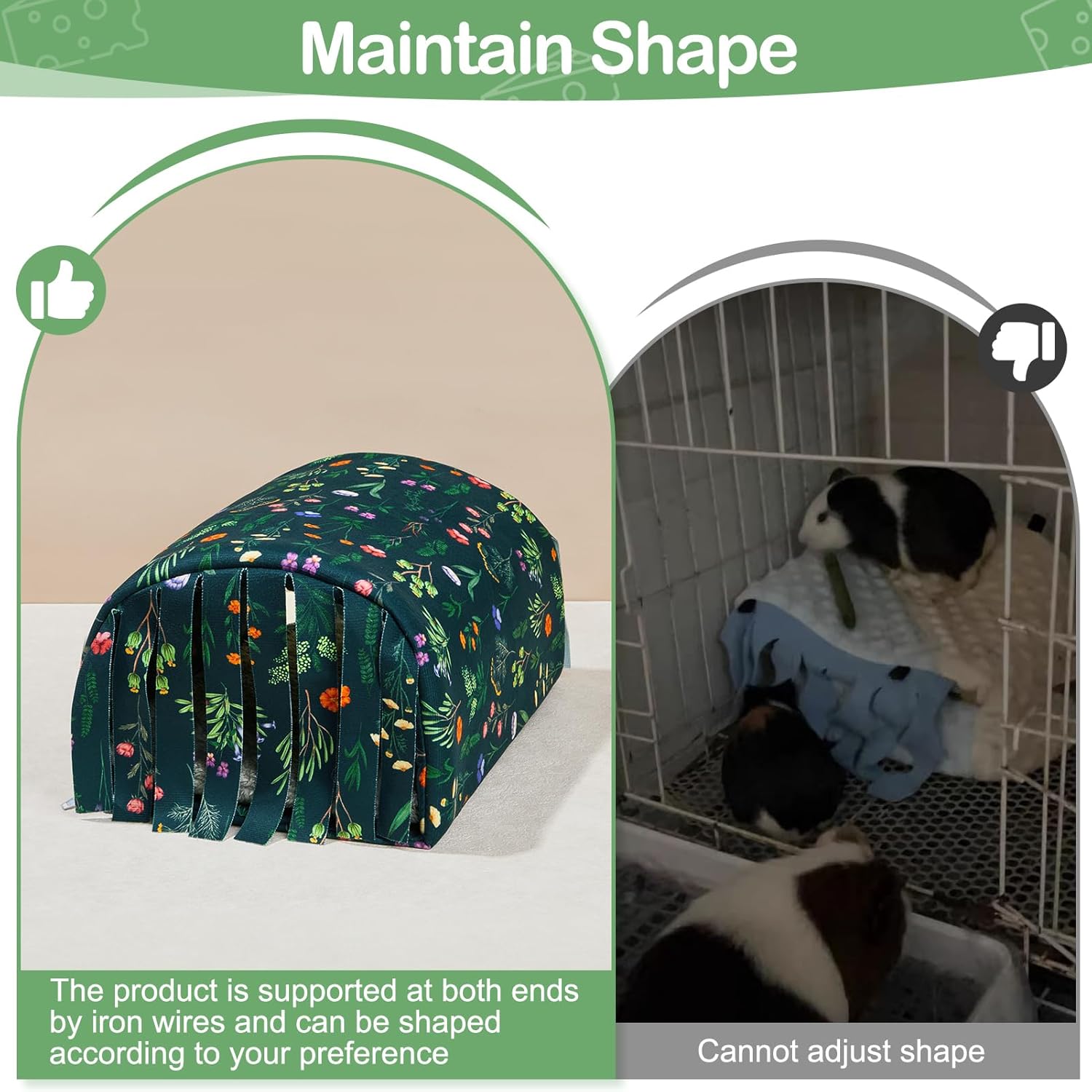 - Machine Washable: Iron wire is used at both ends of the hamster hideout to maintain its shape, it adopts a detachable design; When you want to clean the guinea pig bedding, take out the iron wire then can be machine washed; The product can be reused after cleaning and is not easily deformed