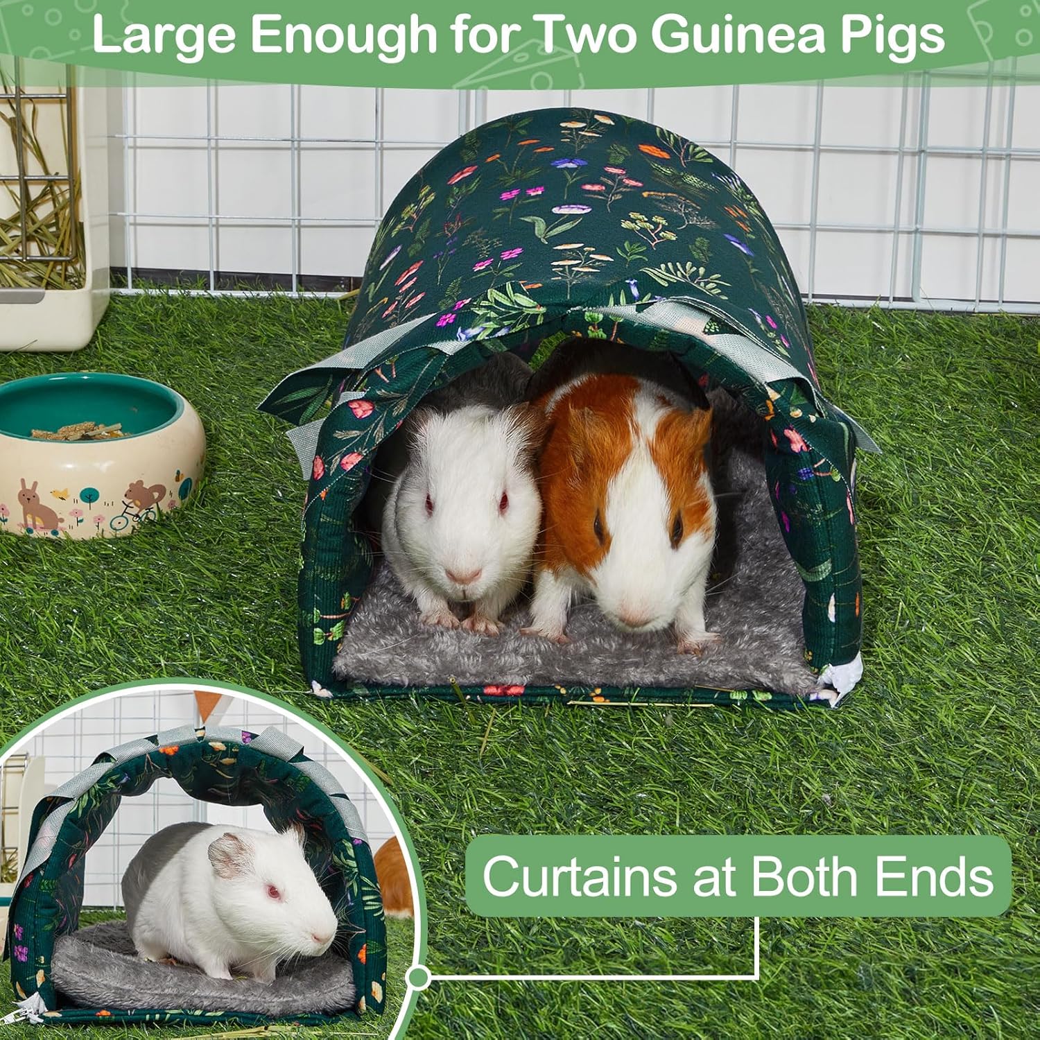 - Great stuff: The curtains at both ends of the opening provide hiding space for your pets, helping them relax and feel comfortable inside the tunnel; This guinea pig hideout can be placed in the guinea pig cages for guinea pigs to play and rest