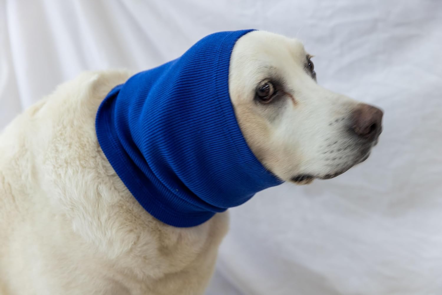 Dog Ear Muffs for Noise Cancelling, Keep Claming Ear Covers Outdoor Activities Neck Snood for Dog (Blue L)