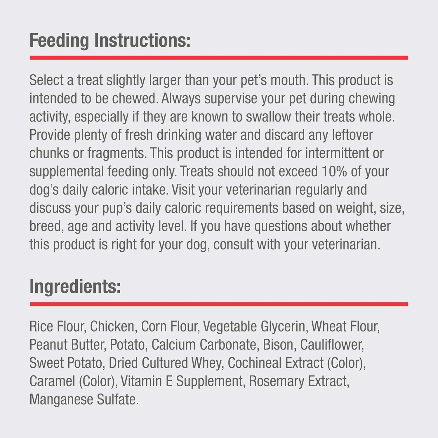 - MADE WITH REAL PEANUT BUTTER & BISON: These low-fat chews are made with real chicken, peanut butter, vegetables and bison.