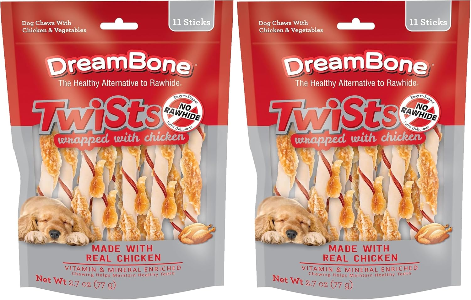 DreamBone Twists Wrapped with Chicken, No-Rawhide Chews for Dogs, 11 Count (Pack of 2)