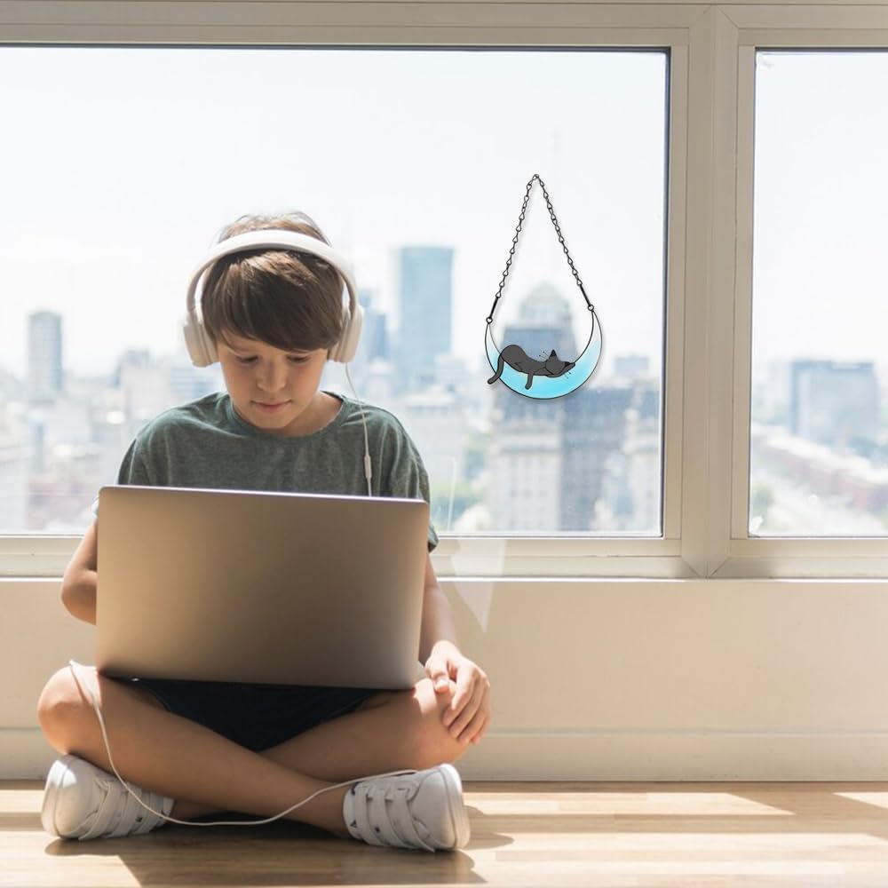 - Cat Memorial Suncatchers Gift: Looking for a heartfelt way to commemorate your beloved cat? The moon and cat on the window hanging, as if the flow of time and the memory of love solidified together. Our cat memorial suncatchers capture the timeless love and memories of your furry friend