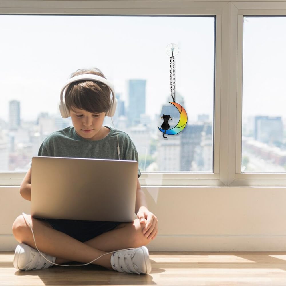 - Cat Memorial Suncatchers Gift: Looking for a heartfelt way to commemorate your beloved cat? The moon and cat on the window hanging, as if the flow of time and the memory of love solidified together. Our cat memorial suncatchers capture the timeless love and memories of your furry friend