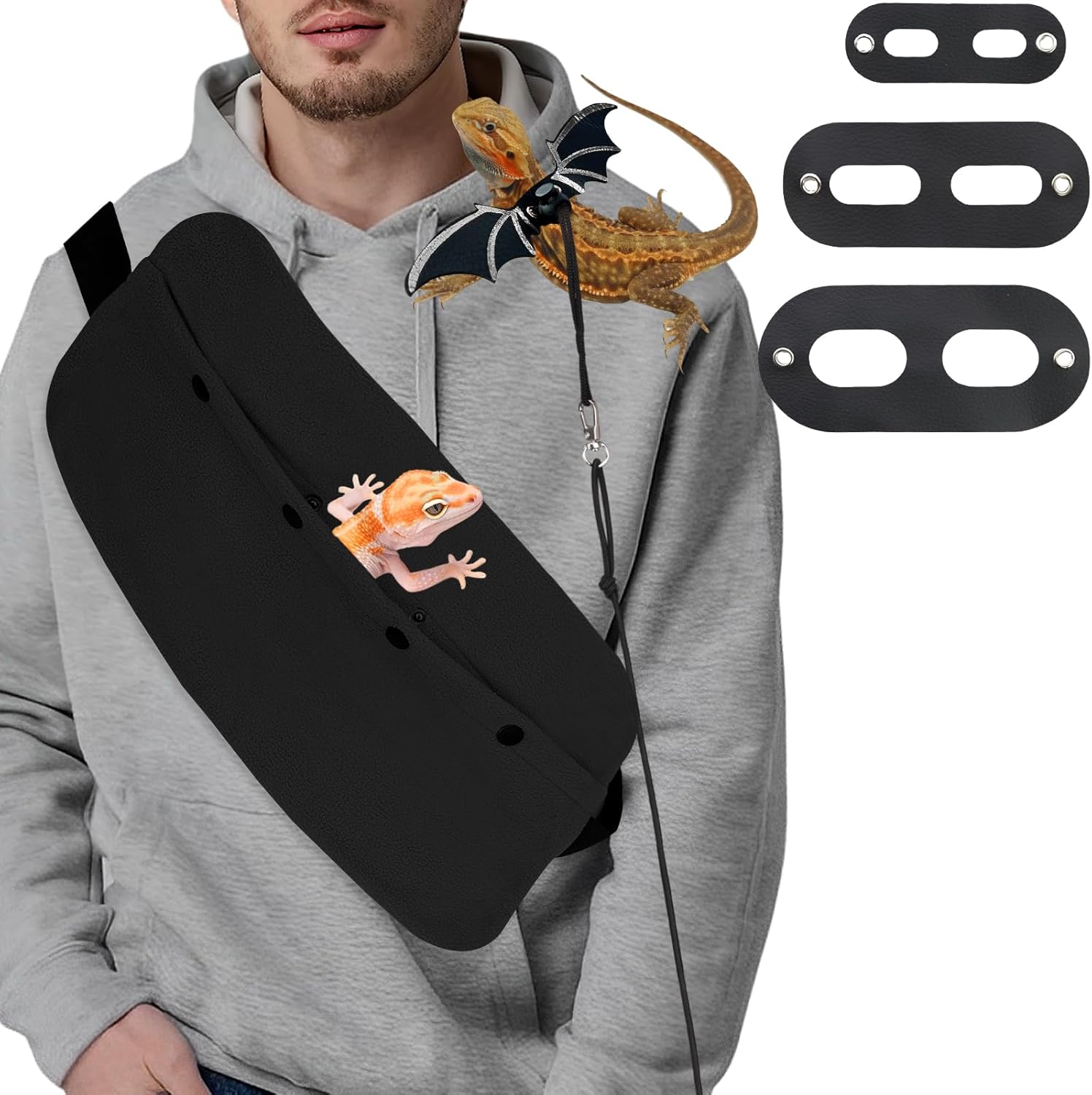 - [Suitable for Various Small Pets] Our bearded dragon leash and carriers set is not just for bearded dragons; it's also perfect to other small pets such as geckos, crested geckos, lizards, chameleons, and more. Give your reptilian friends a safe and stylish mode of transport and leash-walking option.