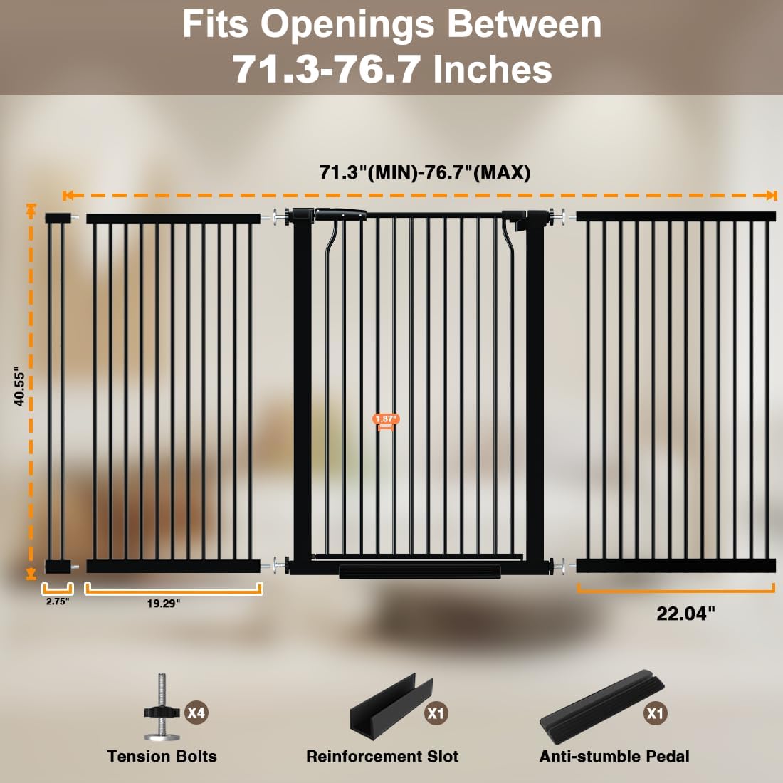41" Extra Tall and Wide Pet Gate, 71.3-76.7 in Baby Gates with Door for Doorways Hallways, Walk Thru Large Dog Gate Indoor, Auto Close Long Child Safety Gates for Kids Puppy Doggie, Black