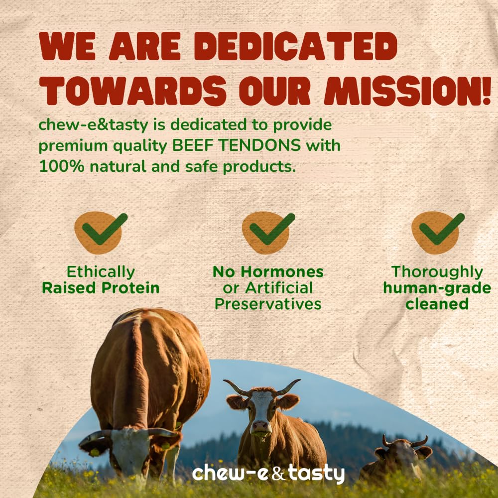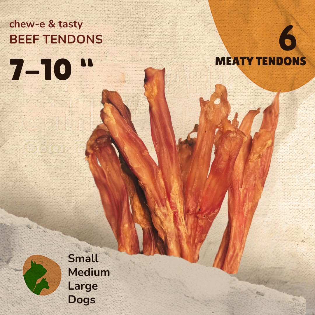 chew-e&tasty Beef Tendon Chews for Dogs (7-10 Inch, 6 Pack), All Natural Rawhide Free Dog Chews, Long Lasting w/Chondroitin & Glucosamine, Dental Health for Small, Medium, Large Dogs