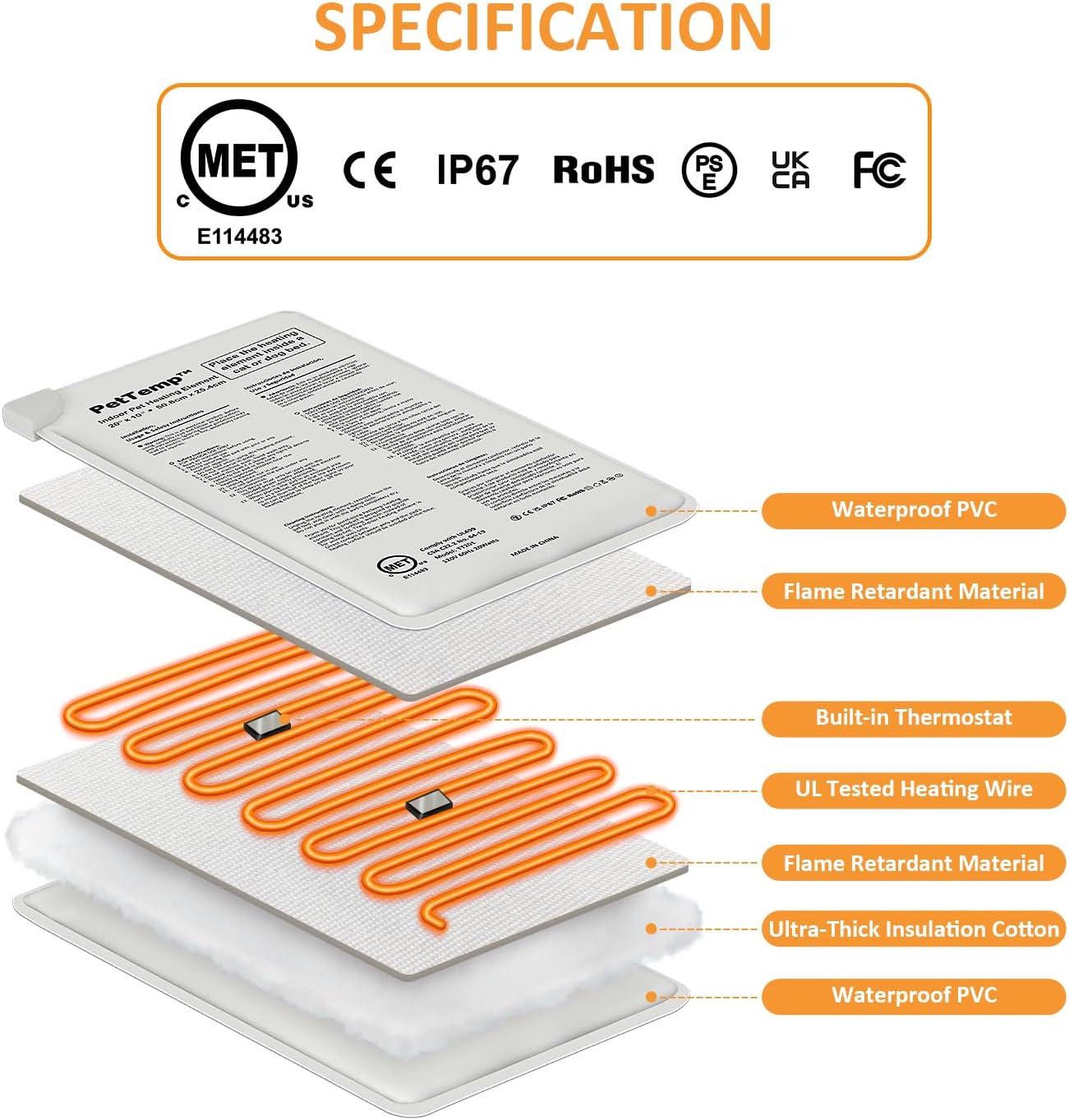 - Reliable Quality: Our heated pet bed warmer is constructed with 6 layers of protective structure with UL-Tested heating wire. The heated element can function perfectly even if your pet has urine, keeping your pet comfortable and warm. (note that it's not suitable for outdoor use.)
