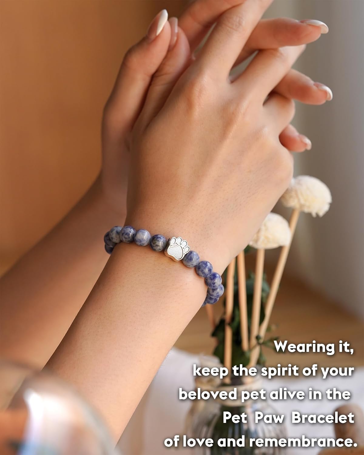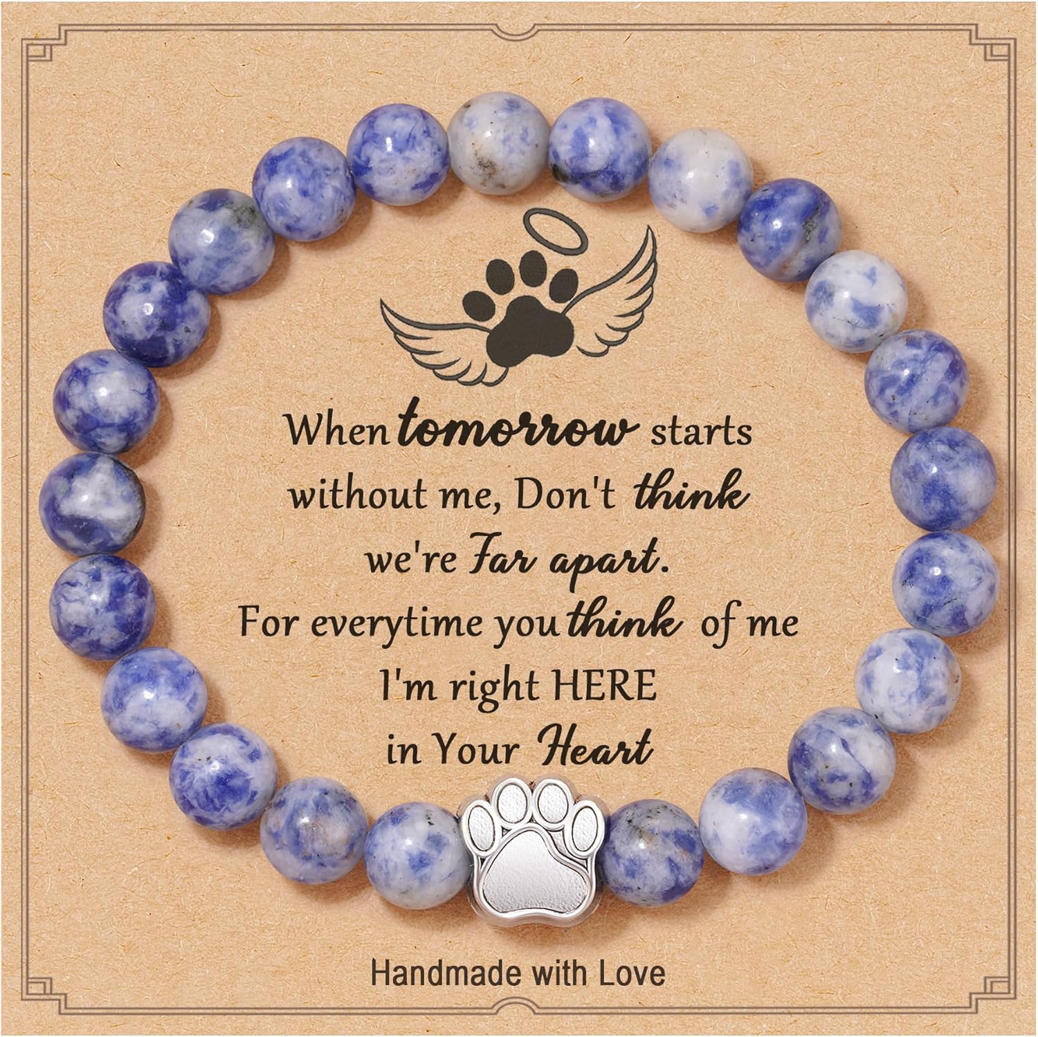 - ใ Material & Sizeใ - Our memorial bracelets feature charming stainless steel pet paw and are crafted with high-quality 8mm natural stone. Length is about 6.8" to 8", fits most people's wrists, and is comfortable and convenient