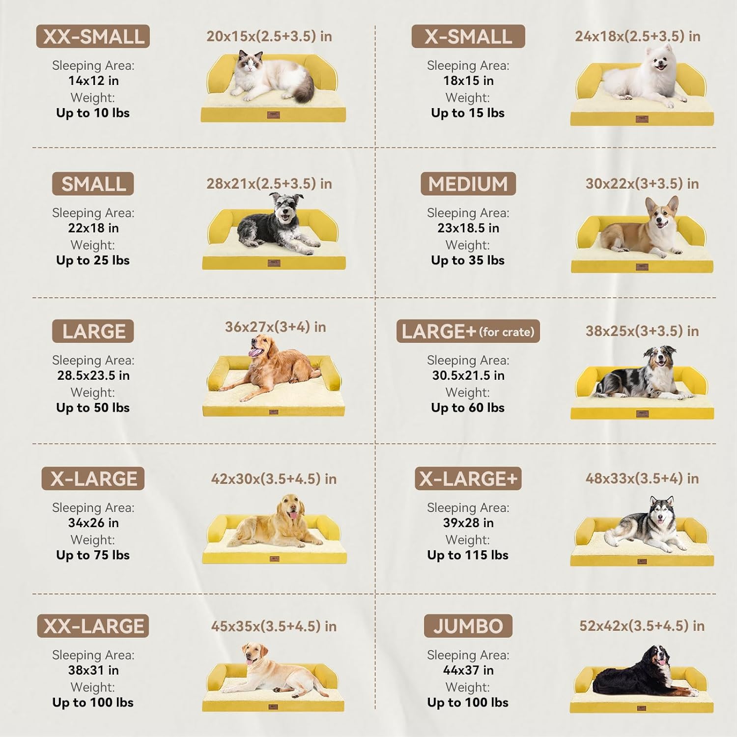 - 【Size Guide】 The ginger dog bed (36x27x7 inches) is suitable for dogs weighing up to 50 pounds, such as Newfoundlands, Bernards, etc; for dogs that enjoy rolling around or need extra space, sizing up will provide greater comfort